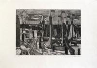 Eggers, WP Eberhard: Narzißchen und ihr Schutzheiliger. [1967]. [Signierte Original-Radierung / signed original etching]. WP Eberhard Eggers, (Wilhelm Paul Eberhard Eggers), geboren am 14. Januar 1939 in Hannover; gestorben am 8. August 2004 ebenda). Vertreter des modernen phantastischen Realismus.