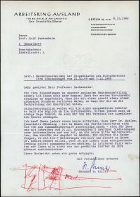 Kulla, Maschinenschriftlicher Brief an Rolf Sackenheim mit Unterschrift