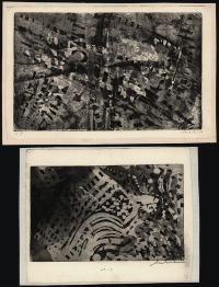 Sackenheim, Rolf: Abstrakte Kompositionen. [19]56. [2 signierte Original-Grafiken / 2 signed original graphics]. (Rolf Sackenheim, geb. 26.09.1921 in Koblenz, gest. 09.01.2006 in Düsseldorf. Deutscher Künstler und Grafiker. Kunststudium in Karlsruhe von 1943/1947 bis 1950 bei Karl Hubbuch, 1952 an der Kunstakademie Düsseldorf, Meisterschüler von Otto Coester. Ab 1963 Dozent an der Kunstakademie Düsseldorf, später als Professor und Leiter der Klasse für Druckgrafik).