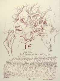 Janssen, Horst: Ida Ehre liest aus der Weltliteratur. 1982. [Signiertes Original-Plakat / signed original poster]. (Horst Janssen, geboren am 14. November 1929 in Wandsbek bei Hamburg, gestorben am 31. August 1995 in Hamburg. Zeichner, Grafiker, Autor, Plakatkünstler, Illustrator und Fotograf, einer der herausragendsten und produktivsten Zeichner und Grafiker des 20. Jahrhunderts).