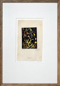 Michel, Karl: Exlibris für Dr. W. Tropp. 1923. [Signierter Original-Farblinolschnitt, gerahmt / signed original color linocut, framed]. (Karl Michel geboren am 6. März 1885 in Leipzig, gestorben am 12. April 1966 in Zwickau. Deutscher Maler, Grafiker und Holzschneider. Studium 1903 bis 1909 an der Akademie in Leipzig, angewandte Grafik bei Georg Belwe und Friedrich Wilhelm Kleukens).