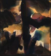 Sackenheim, Rolf: Informelle Komposition. [Signiertes Original-Aquarell / signed original watercolour painting]. (Rolf Sackenheim, geb. 26.09.1921 in Koblenz, gest. 09.01.2006 in Düsseldorf. Deutscher Künstler und Grafiker. Kunststudium in Karlsruhe von 1943/1947 bis 1950 bei Karl Hubbuch, 1952 an der Kunstakademie Düsseldorf, Meisterschüler von Otto Coester. Ab 1963 Dozent an der Kunstakademie Düsseldorf, später als Professor und Leiter der Klasse für Druckgrafik).