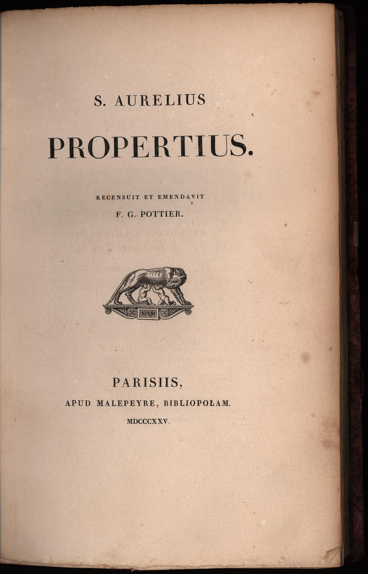 Properz, S. Aurelius Propertius. Recensuit et emendavit F.G. Pottier. Paris 1825