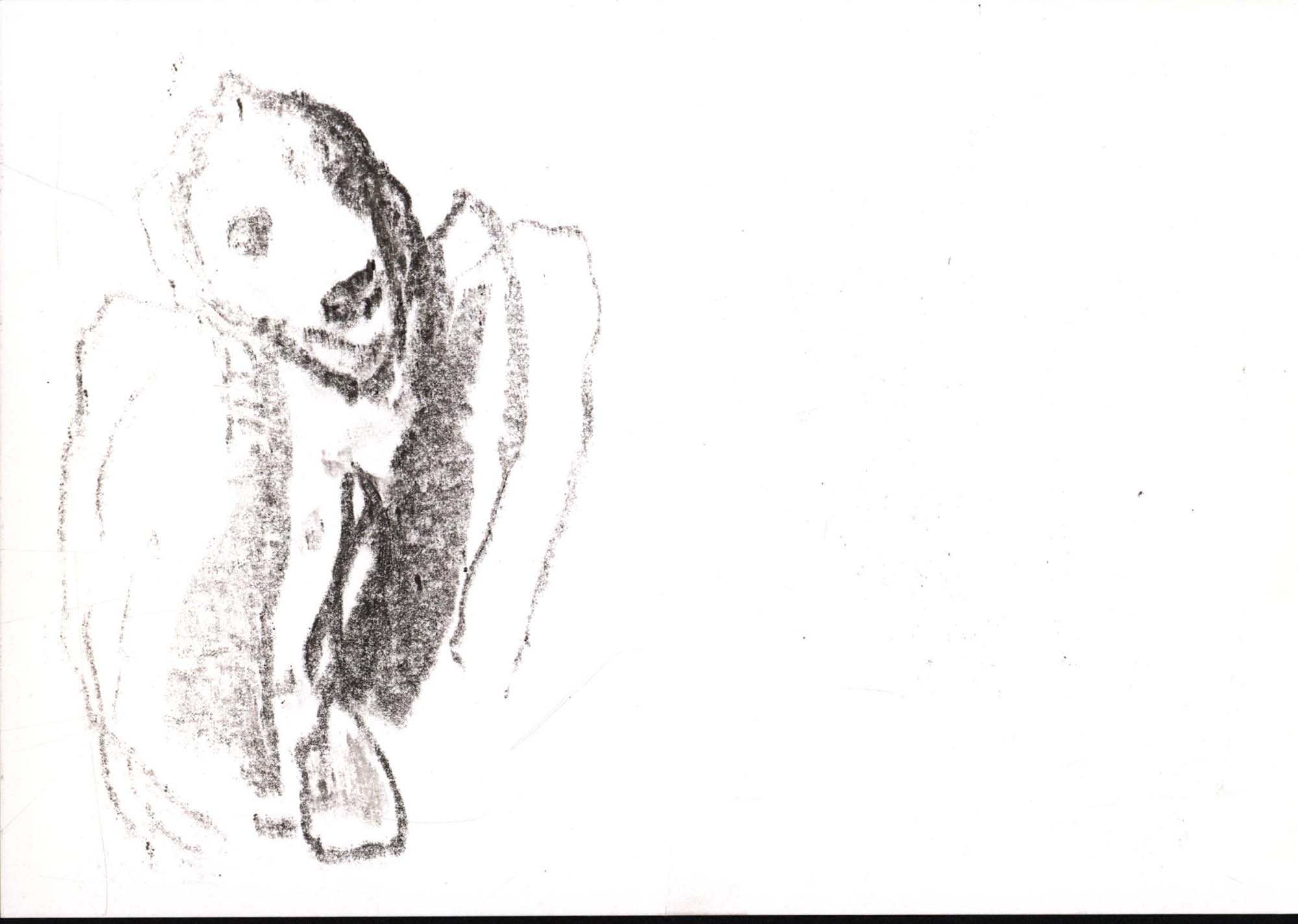 Original drawing by Heather Betts [with black oil crayon] on a folded paper. Sheet size (total): 14.8 x 21.0 cm. Dimensions drawing: appr. 13 x 9 cm. Project 1001, number 2201. With the enclosed envelope from Ralf Seilheimer with Heather Betts former address in Berlin. Very good condition.