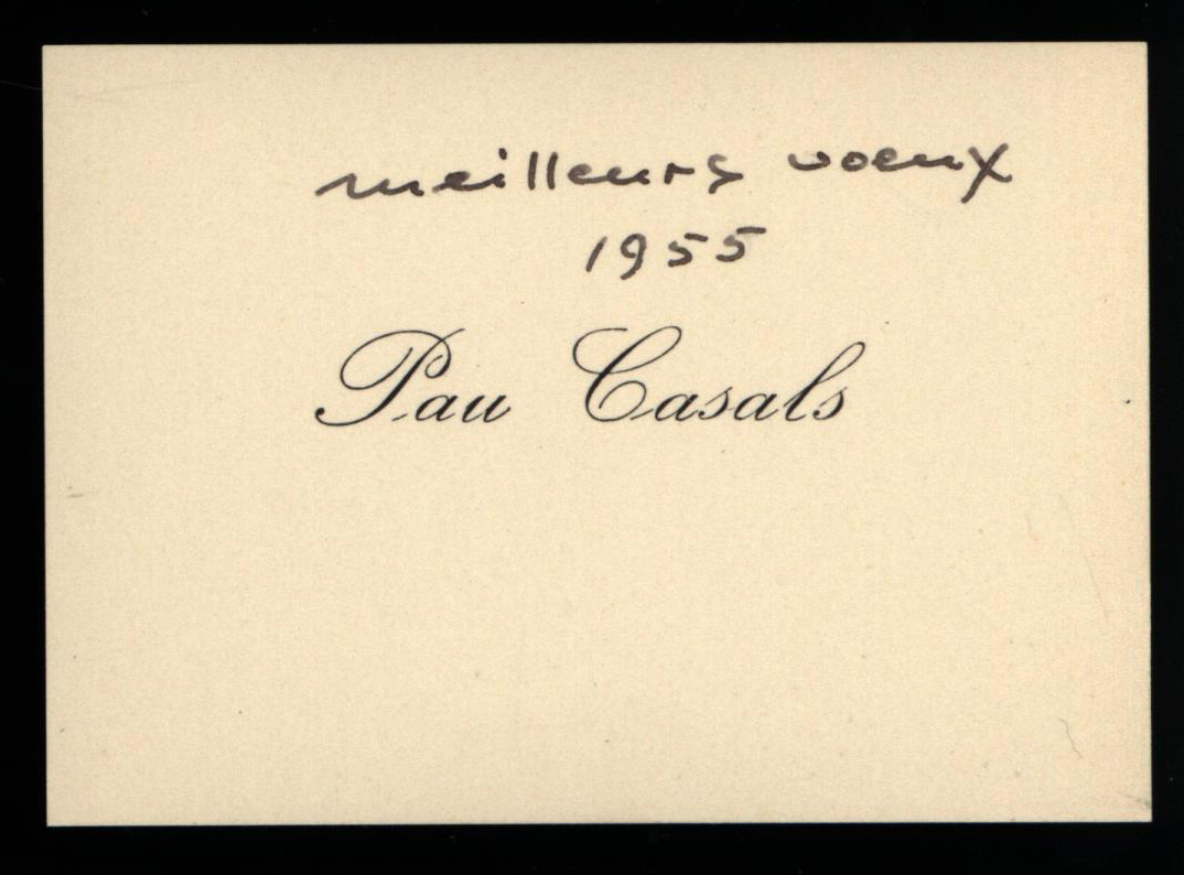 Casals, Visitenkarte mit handschriftlichen Grüßen. 1955.