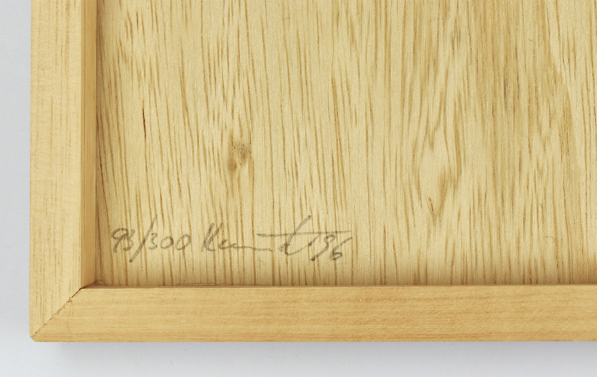 Nummer 93 von 300 nummerierten und von Rainer Knaust im Innern der Holzbox mit Bleistift signierten Exemplaren der Edition. 25 beidseitig mit bedrucktem Papier kaschierte Holzklötze, die die ausgestellten Werke zeigen, rückseitig betitelt und beschrieben, und die dazugehörige Ausstellungseinladung im Postkartenformat, zusammen in Holzbox mit Metallschließe. Maße Holzklötze: je ca. 3,5 x 2,5 x 1 cm. Maße Box: 21,5 x 15,5 x 2,8 cm. Edition anlässlich der Ausstellung im Deutschen Klingenmuseum Solingen, 17.3. – 28.4.1996. Provenienz: Aus dem Nachlass des Kunstsammlers und Autors Ralf Seilheimer, mit seiner Inventarnummer auf der Rückseite der Holzbox. Sehr guter Zustand.