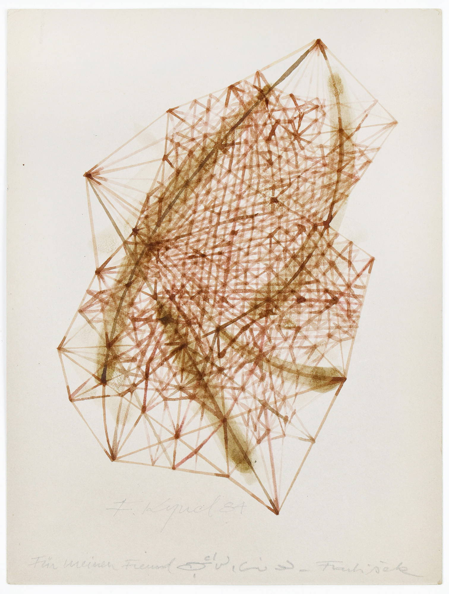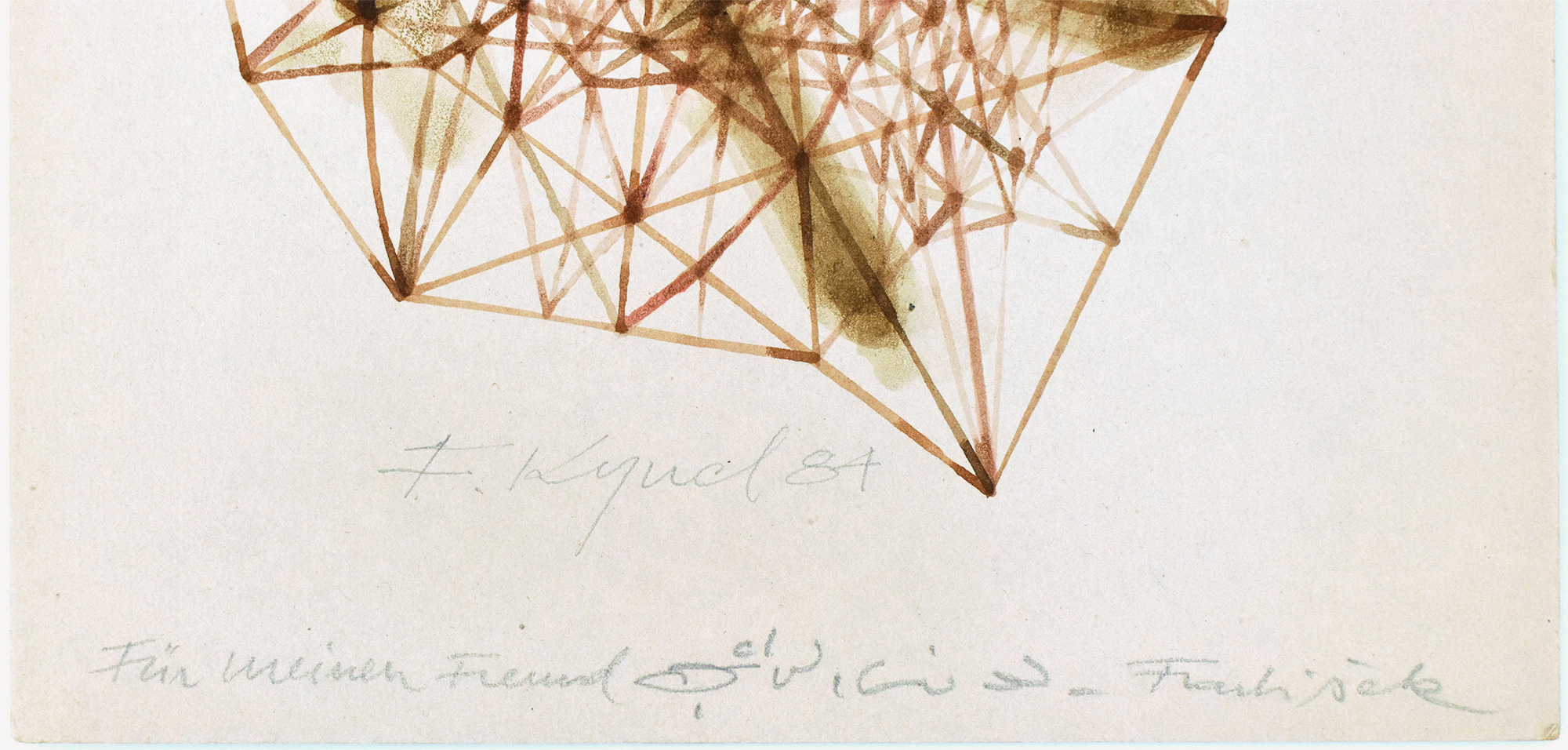 Kyncl, Frantisek: Ohne Titel. 1984. [Signierte, gewidmete Original-Zeichnung / signed, dedicated original drawing]. (Frantisek Kyncl, geb. 1934 in Pardubitz/Tschechien, gest. 2011 in Düsseldorf, international bekannter Bildhauer und Maler, Konstruktivist. Lebte seit 1969 als tschechischer Republikflüchtling im Ruhrgebiet).