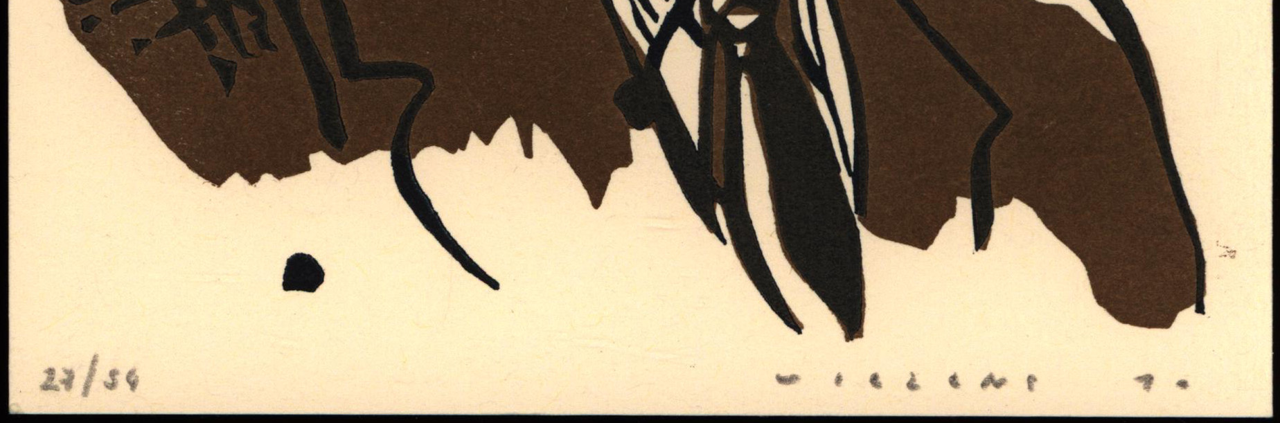 Nummer 27 von 54 nummerierten Original-Lithografien von Steve Viezens in Braun und Schwarz, am unteren Blattrand mit Bleistift nummeriert, signiert und datiert (’10). Blattgröße: 20,0 x 15,5 cm. Sehr guter Zustand.