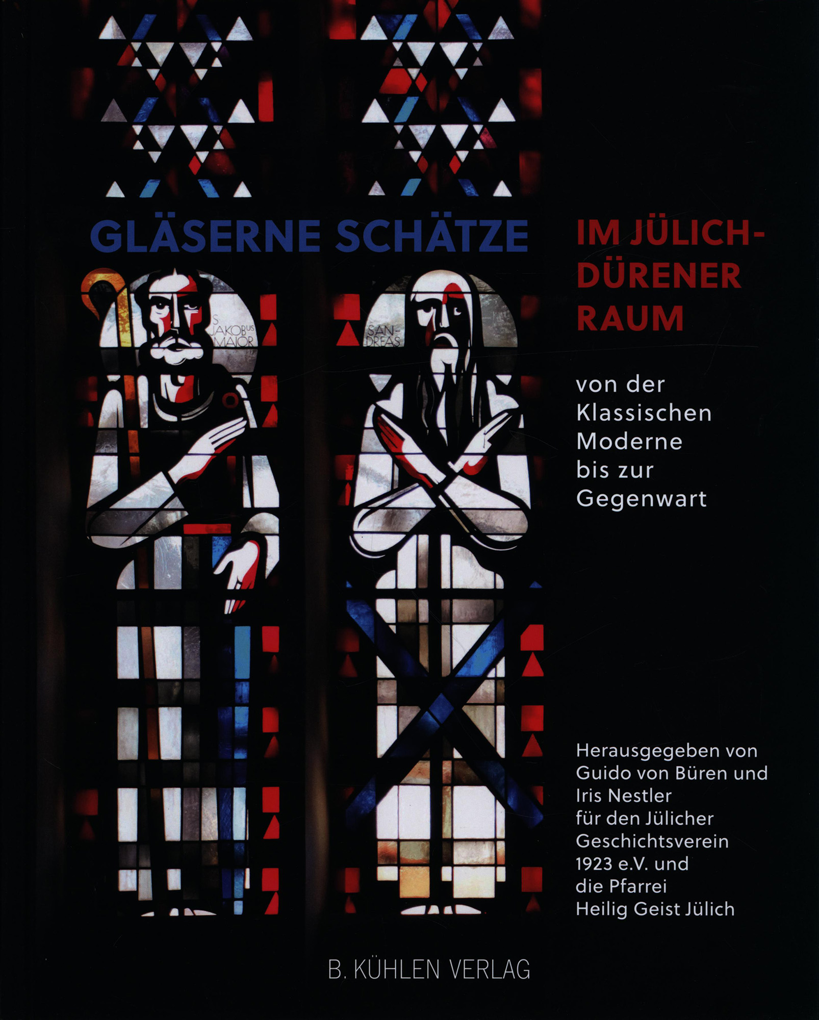 Büren, Guido von; Nestler, Iris [Hrsg.]: Gläserne Schätze im Jülich-Dürener Raum. Von der Klassischen Moderne bis zur Gegenwart. Mit Texten von Willi Arnolds, Guido von Büren, Yvonne Hildwein und 13 anderen. Herausgegeben von Guido von Büren und Iris Nestler für den Jülicher Geschichtsverein 1923 e.V. und die Pfarrei Heilig Geist Jülich. Mönchengladbach, B. Kühlen Verlag, 2024. 4°. 30,5 x 25 cm. 529 Seiten. Gebundener Original-Pappband.