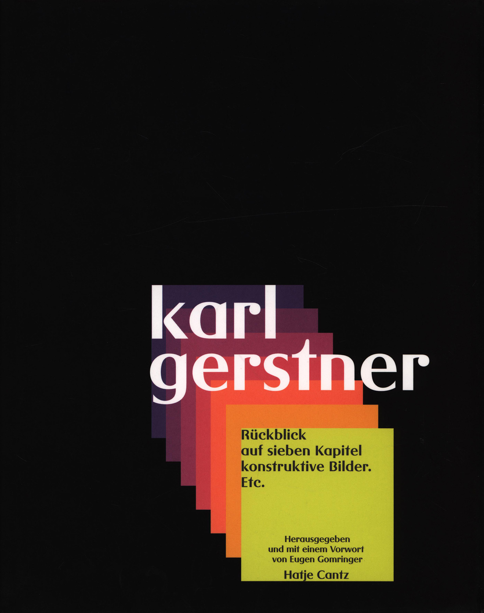 Gerstner, Karl – Gomringer, Eugen [Hrsg.]: Rückblick auf sieben Kapitel konstruktive Bilder etc. Herausgegeben und mit einem Vorwort von Eugen Gomringer. Ostfildern-Ruit, Hatje Cantz Verlag, 2003. 4°. 30,5 x 24 cm. 255 (1) Seiten. Original-Pappband mit Original-Schutzumschlag.