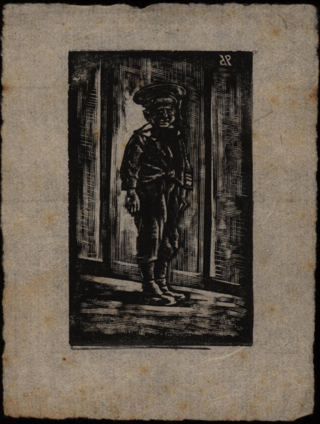 Preuße, August: ego, 6 Jahre alt. Und: Umzugsnotiz. [2 Original-Holzschnitte, signiert]. (August Preuße, geboren am 22. März 1908 in Höhscheid, gestorben am 9. März 1942 in Russland. Nach einer Ausbildung an der Fachschule für Metallgestaltung in Solingen, Studium ab Oktober 1929 an der Kunstkademie Düsseldorf beim Expressionisten Heinrich Nauen. August Preuße gehörte ab April 1931 neben Petra Petitpierre, Erwin Weiers, Eugen Batz, Hubert Berke, Georg Jakob Best und Emil Bert Hartwig zu den Meisterschülern von Paul Klee an der Düsseldorfer Kunstakademie).