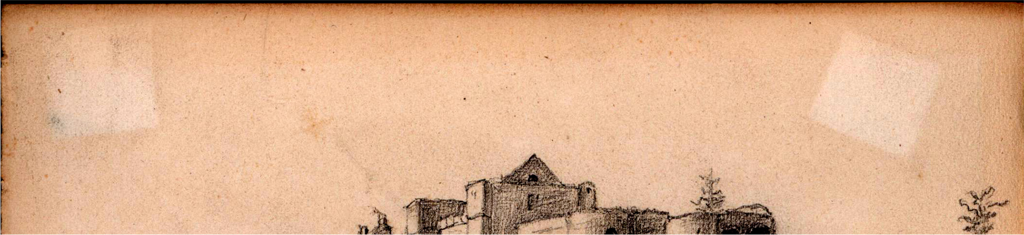 Original-Zeichnung von Henri de Braekeleer mit Bleistift auf Papier, am unteren Blattrand mit Bleistift signiert und bezeichnet. Blattgröße: 11,4 x 18,0 cm. Blattkanten gedunkelt, Blatt ansonsten etwas unregelmäßig gedunkelt, zwei hellere Stellen im oberen Blattbereich. Rückseitig mit zwei Resten von weißem Nassklebeband aus früherer Montage. Guter bis sehr guter Zustand.