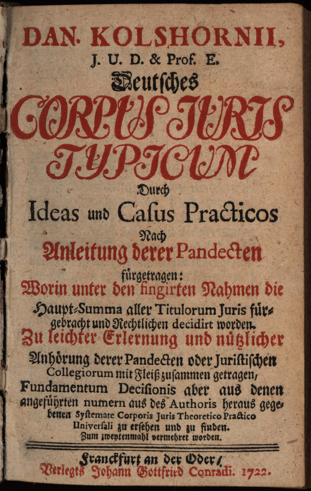 Kolshorn, Deutsches Corpus Iuris Typicum. Frankfurt/Oder, 1722.