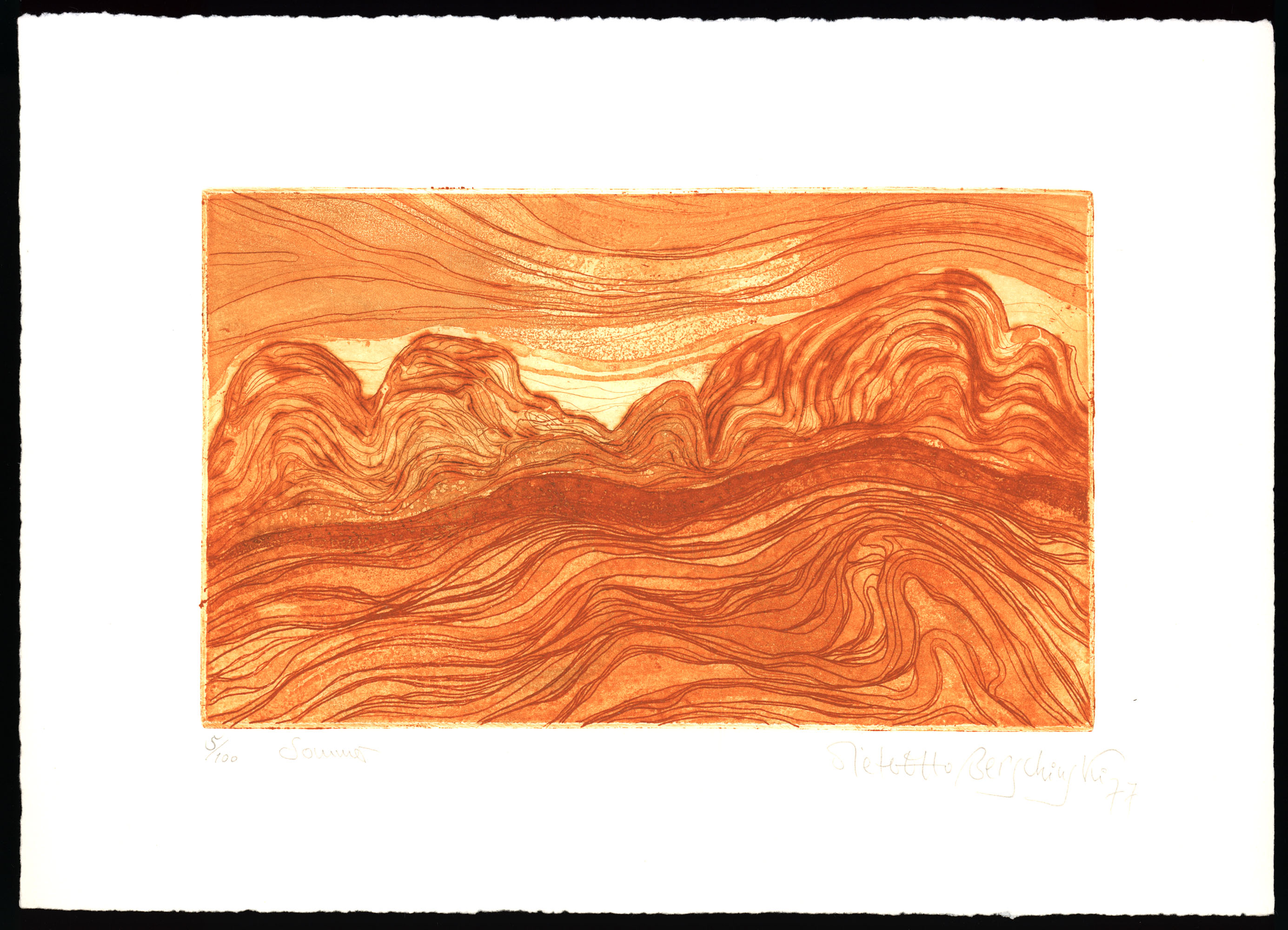 Nummer 5 von 100 mit Bleistift nummerierten, beschrifteten, datierten (77) und von Dieter Otto Berschinski signierten Original-Farbradierungen auf Büttenpapier. Maße Blatt: 26,8 x 37,8 cm. Maße Abbildung: 16,0 x 27,0 cm. Sehr gutes Exemplar.
