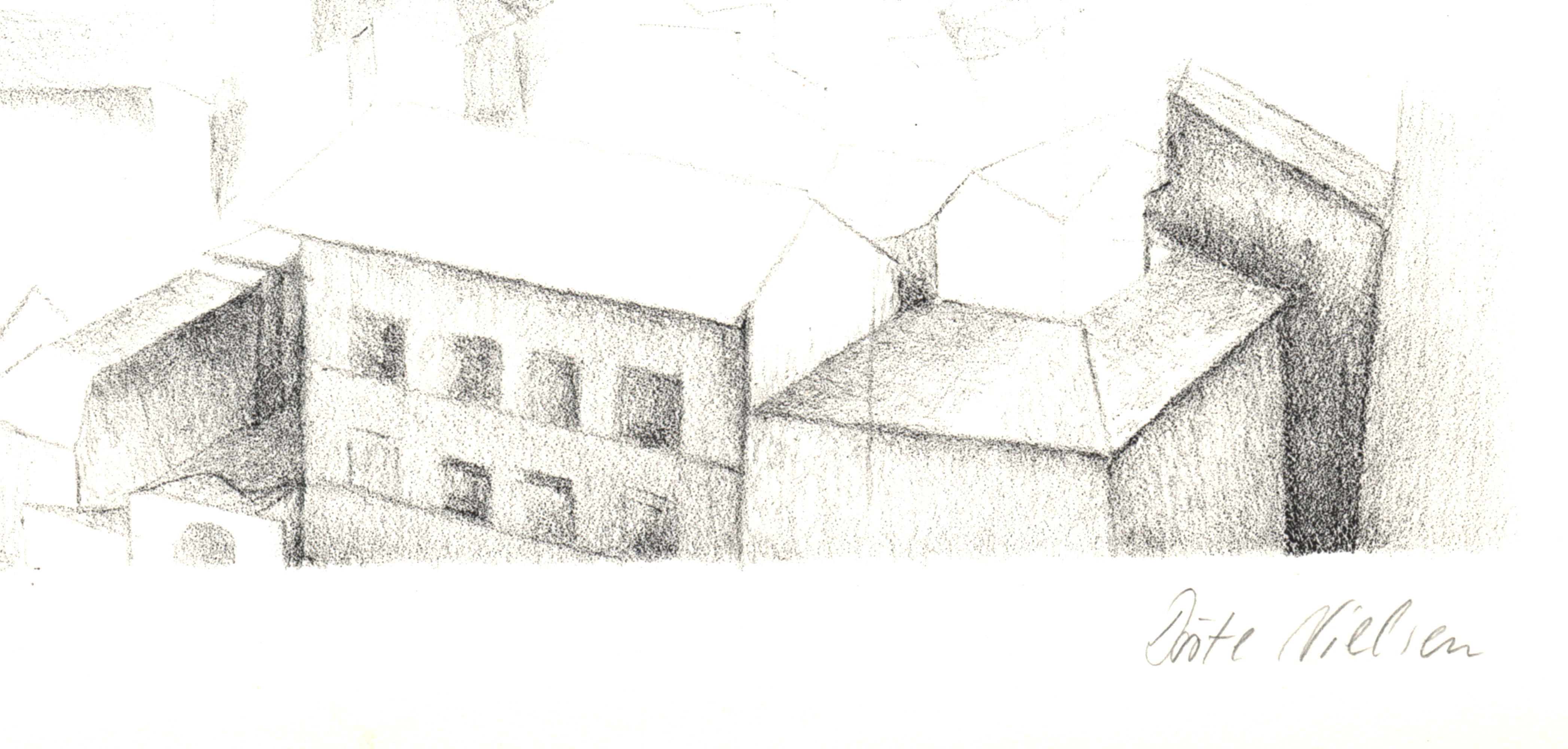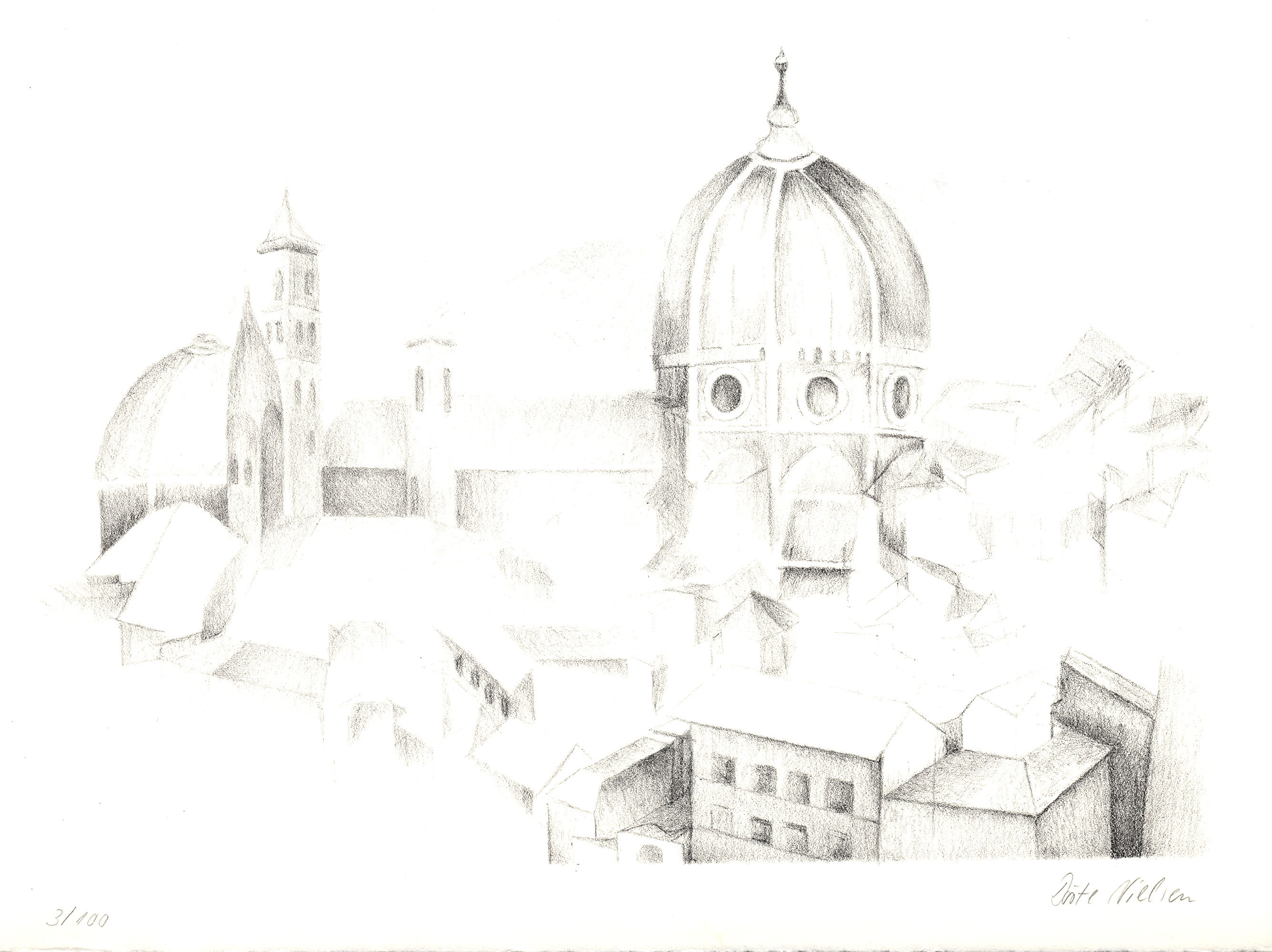 Nielsen, Dörte: Stadtansicht. [Signierte Original-Lithografie / signed original lithograph]. Dörte Nielsen, geboren 1942 in Kiel. 1962 Studium der Malerei bei Werner Rieger, Kiel.