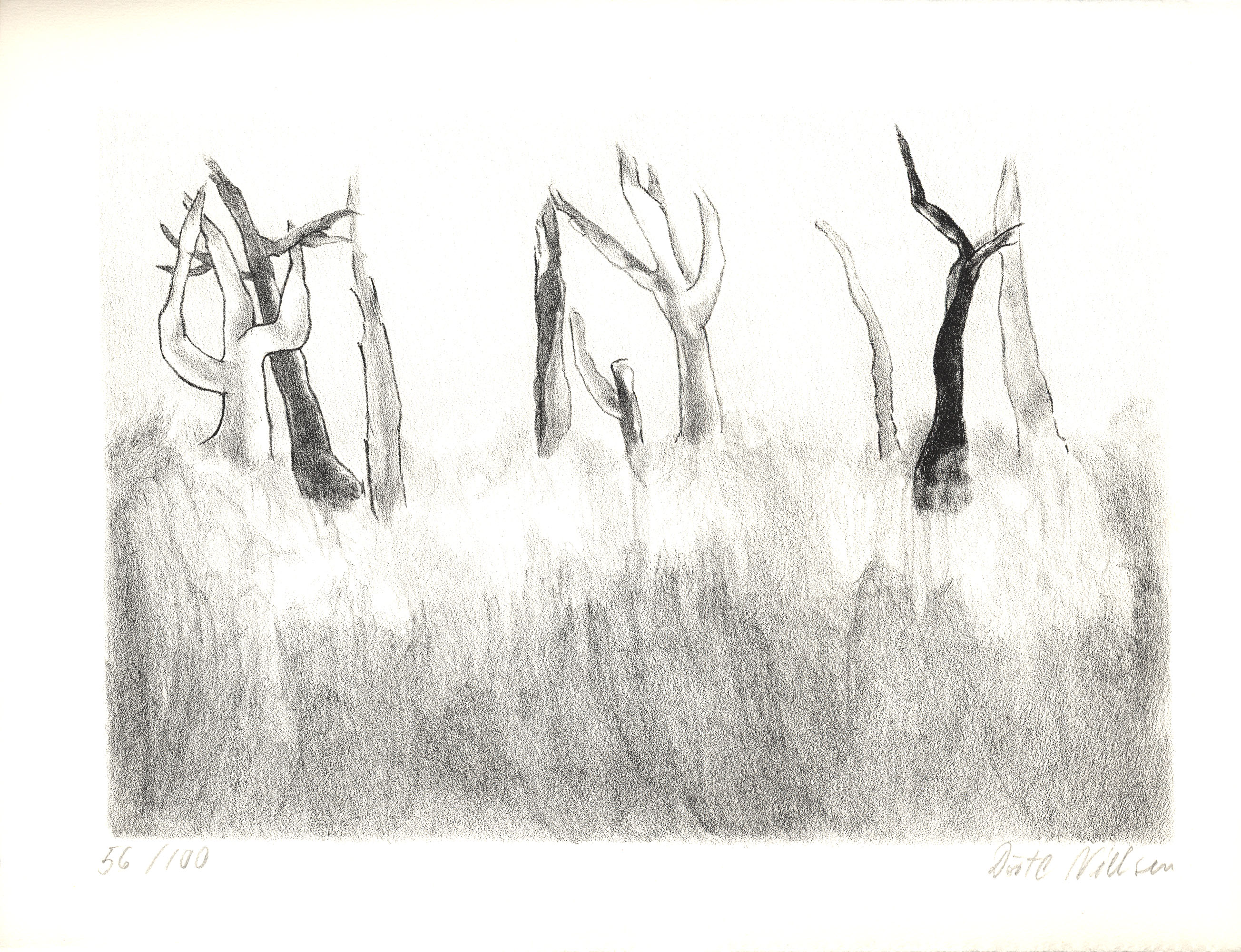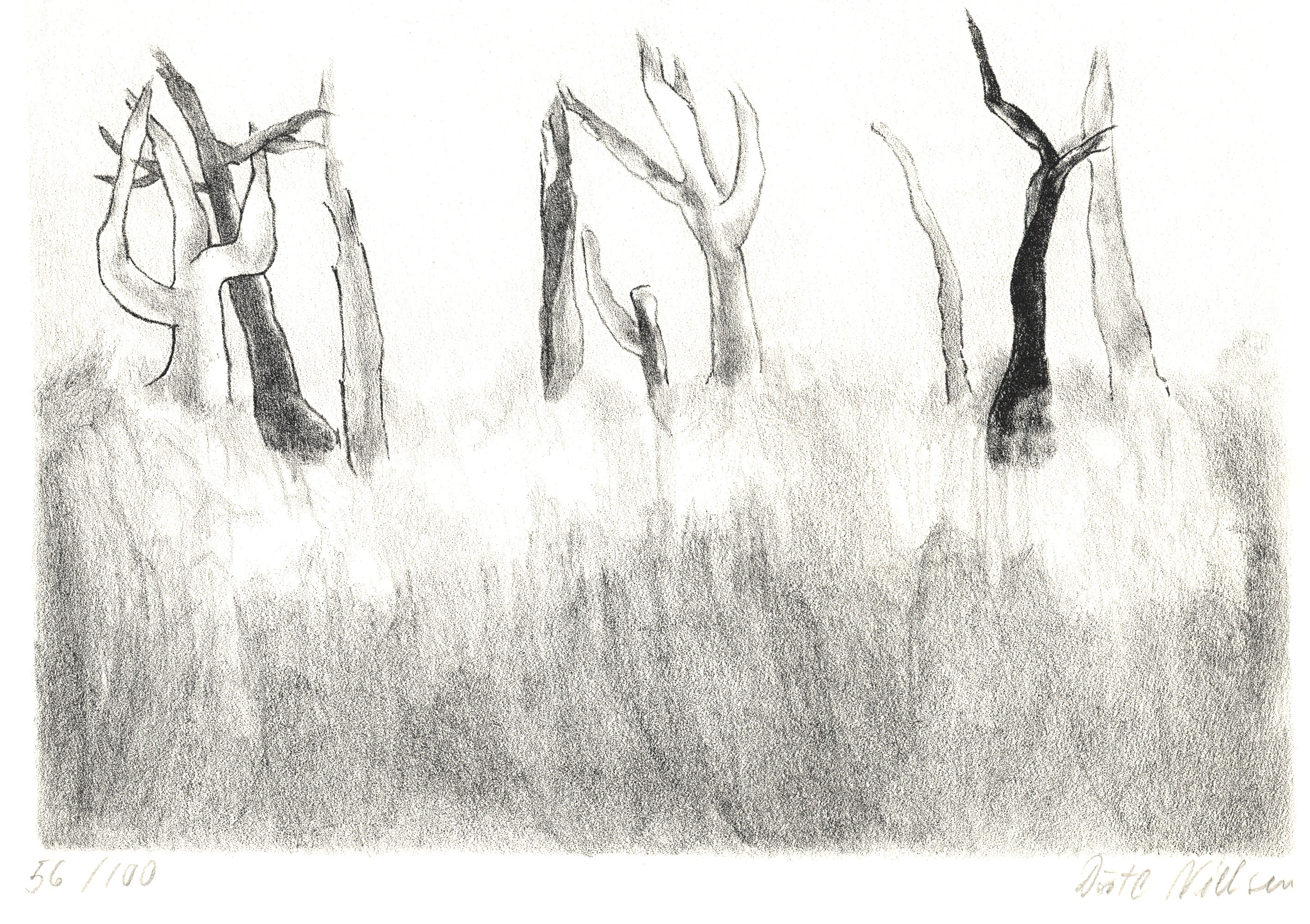 Number 56 of 100 original lithographs on handmade paper, numbered, and signed by Dörte Nielsen. Measure sheet: 30,8 x 40,8 cm. Measure image/plate: 23,2 x 34,0 cm. Fine condition.