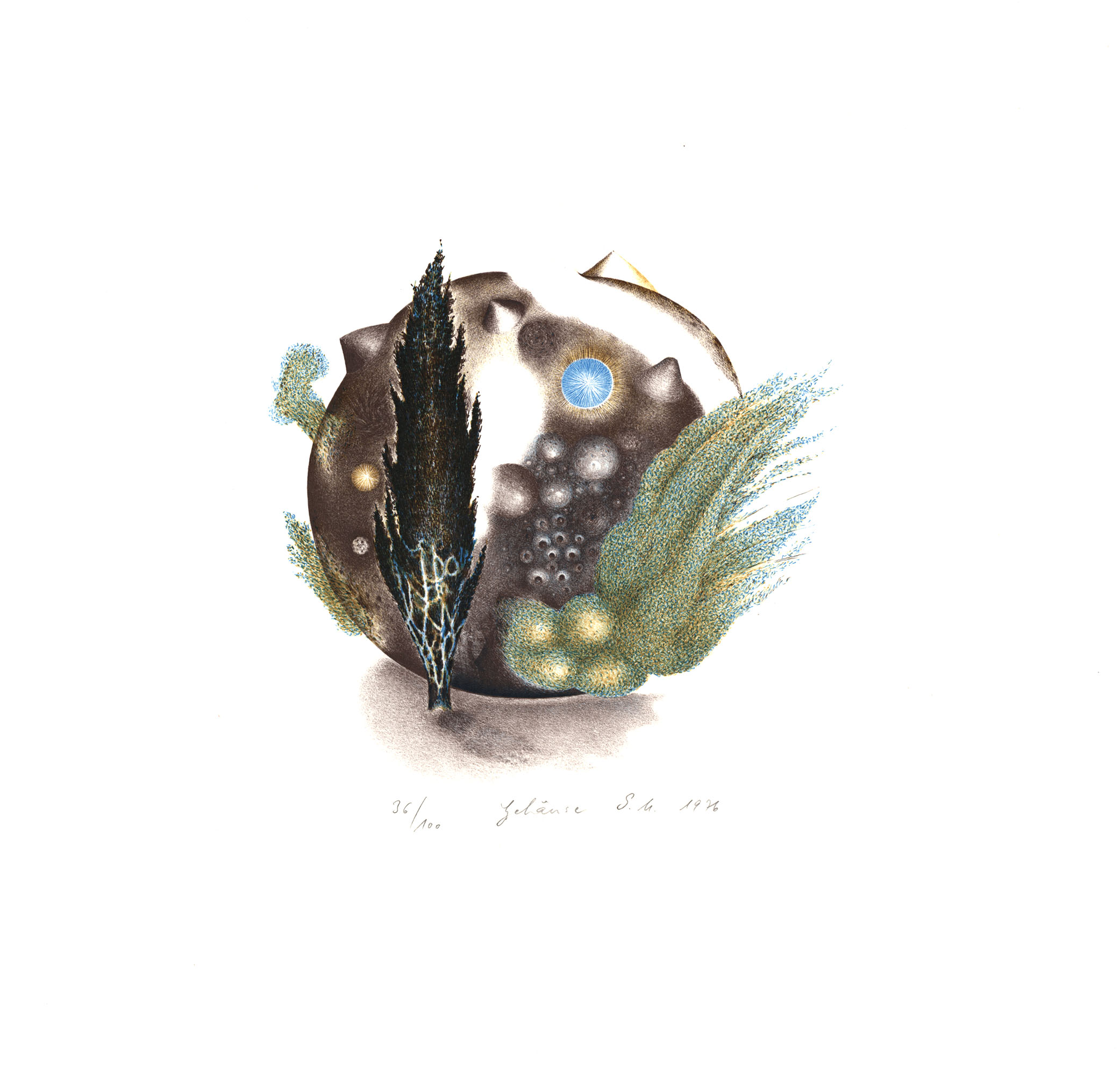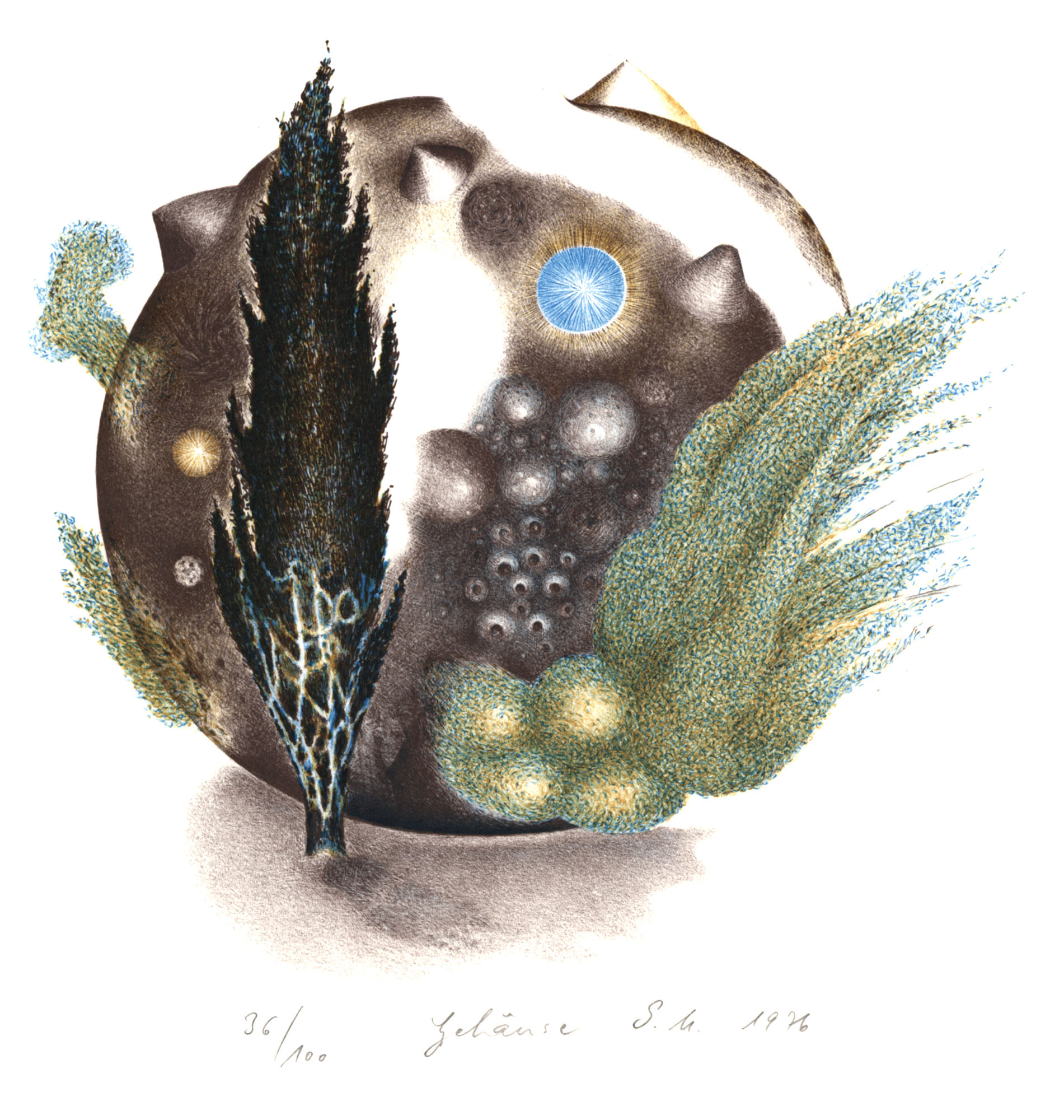 Melchert, Susanne: Gehäuse. 1976. [Signierte Original-Farblithografie / signed original lithograph in color]. Susanne Melchert, geboren 1942 in Bad Homburg, Studium am Städel in Frankfurt, bei Professor Albert Burkart.