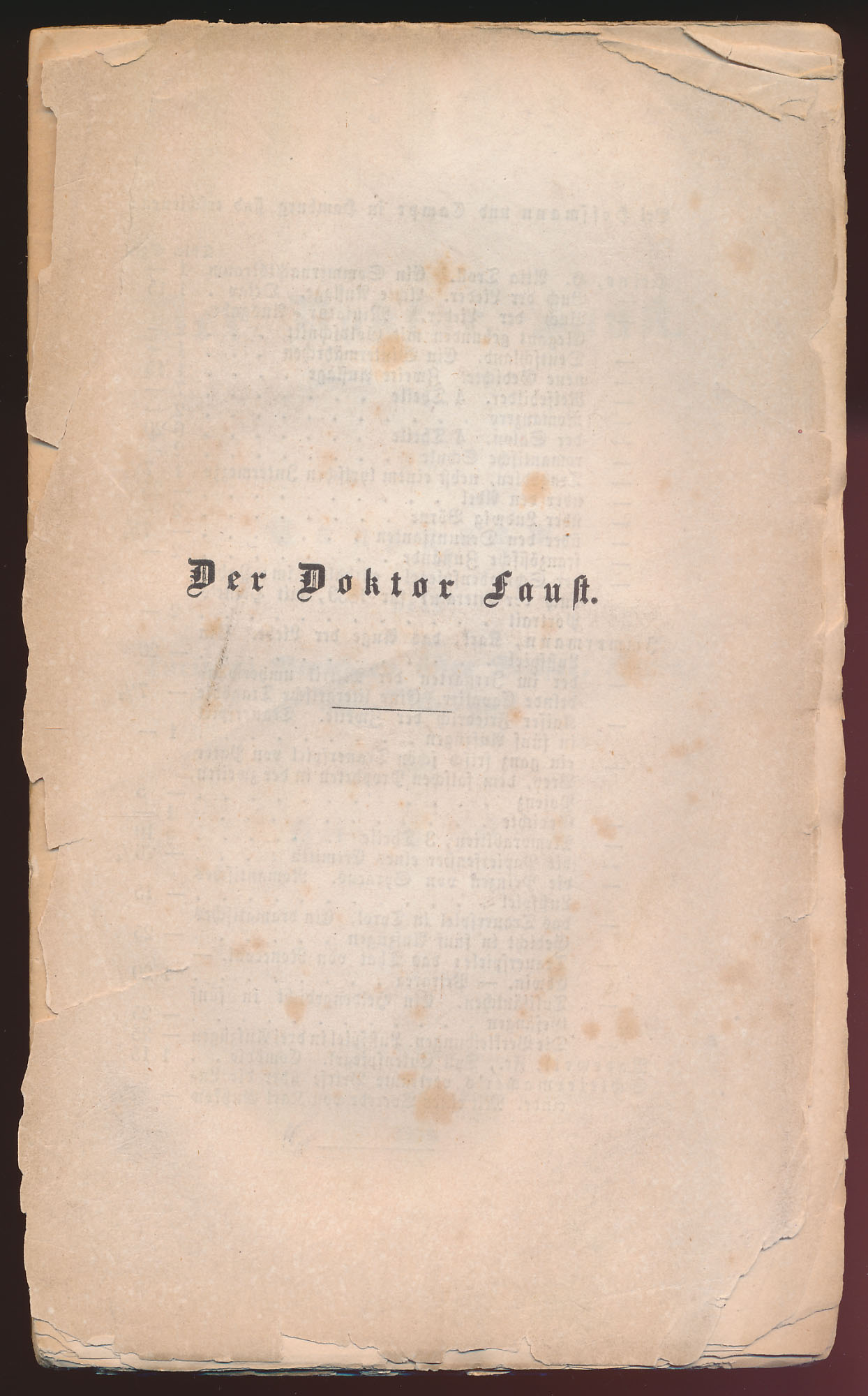 Erste Ausgabe, zweiter Druck. Wilpert/Gühring 22. Mit dem 47-seitigen Begleitheft „Heines Tanzpoem. Der Doktor Faust“ von Oskar Walzel, Weimar, Gesellschaft der Bibliophilen, 1917. Mit Schmutztitel, Verlagsanzeige und Anzeige vom „Bildniß von Heinrich Heine“ von Adolph Hornemann (letztes Blatt). Druck von H. Hotop in Cassel. Die Restauflage dieser Ausgabe wurde 1917 von der Gesellschaft der Bibliophilen als Jahresgabe ausgegeben (mit dem oben genannten Begleitheft). Exlibris auf Kartonmappe. Heine-Broschur ohne (!) den Umschlag mit der lithografierten Illustration nach Georg Spiller von Hauenschild und mit gelöstem Vortitel, Randläsuren, duchgehend leicht stockfleckig, unaufgeschnitten. Noch gutes Exemplar mit gutem bis sehr gutem Begleitheft.