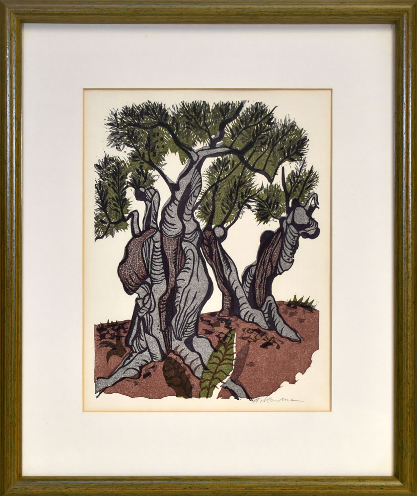 Ackermann, Knorrige Bäume. Signierter Original-Farbholzschnitt, gerahmt