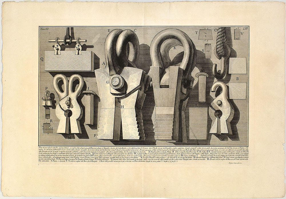 Piranesi, Giovanni Battista: Modo, col quale furono alzati le grandi pietre. (1756/57). [Original-Radierung / original etching]. Giovanni Battista Piranesi, auch Giambattista Piranesi, geboren am 4. Oktober 1720 in Venedig, gestorben am 9. November 1778 in Rom. Italienischer Kupferstecher, Architekturtheoretiker.