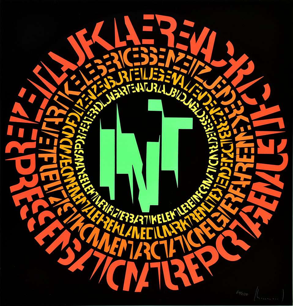 Number 64 of 250 numbered original screen prints on heavy cardboard, signed by Ferdinand Kriwet lower right. Published in the edition of graphic sheets of the Rheinische Post, 1971. Sheet/image dimensions: 52.0 x 49.0 cm. Very good copy.