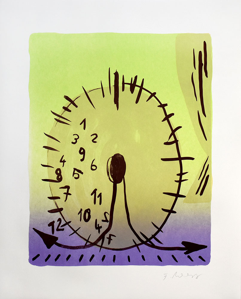 6 original color lithographs on 210 g/sqm Zerkall handmade paper, printed by Felix Bauer, Cologne. Each sheet signed in lead below the image by Florian Meisenberg. Dimensions sheets: 62.0 x 50.5 cm. Dimensions of illustrations: 47.5 x 37.5 cm. Edition of the Griffelkunst Association, Hamburg, 2012. Griffelkunst, Index of Editions 348 B1-B6. Very good, immaculate condition.