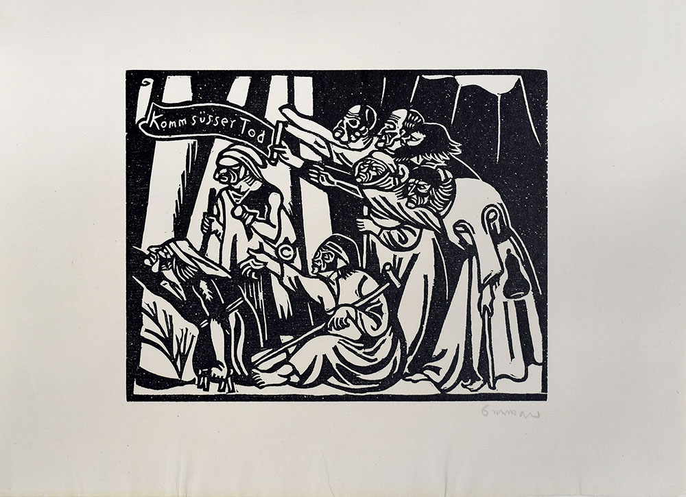 Seewald, Richard: Aus dem Composanto (Komm süßer Tod). [1922]. [Signierter Original-Holzschnitt / signed original woodcut]. (Richard Seewald, geboren am 4. Mai 1889 in Arnswalde/Neumark, gestorben am 29. Oktober 1976 in München. Mitglied der „Neue Sezession“ und dem Deutschen Künstlerbund).