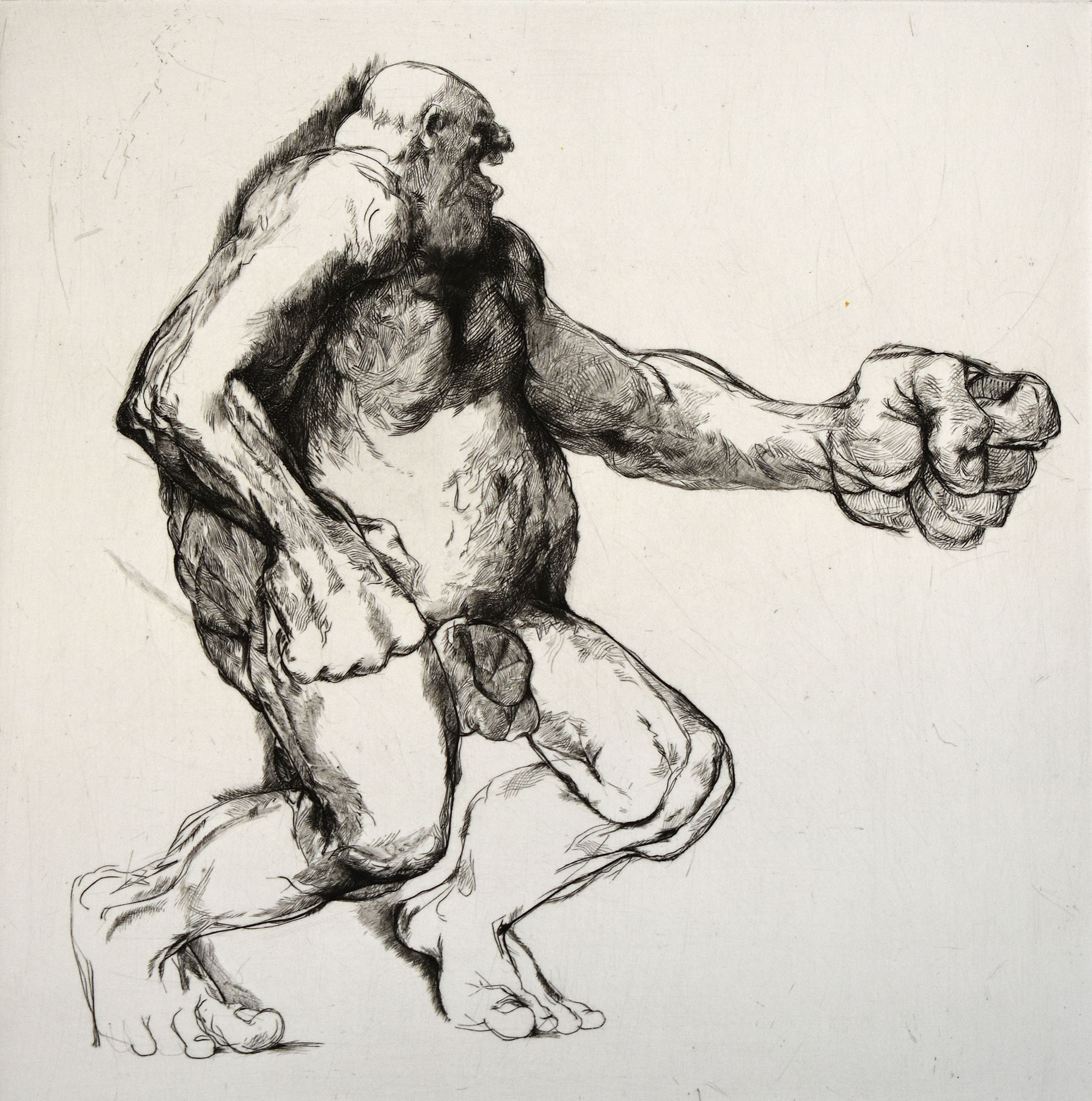 Süverkrüp, Dieter: Was wir machen müssen, ist Realpolitik. [Signierte Original-Radierung / signed original engraving]. (Dieter Süverkrüp, geboren am 30. Mai 1934 in Düsseldorf. Deutscher Liedermacher, Kabarettist und Grafiker. Studium an der Werkkunstschule in Düsseldorf. Gemeinsam mit Gerd Semmer, Arno Klönne und Frank Werkmeister gründete er 1961 den pläne-Verlag).
