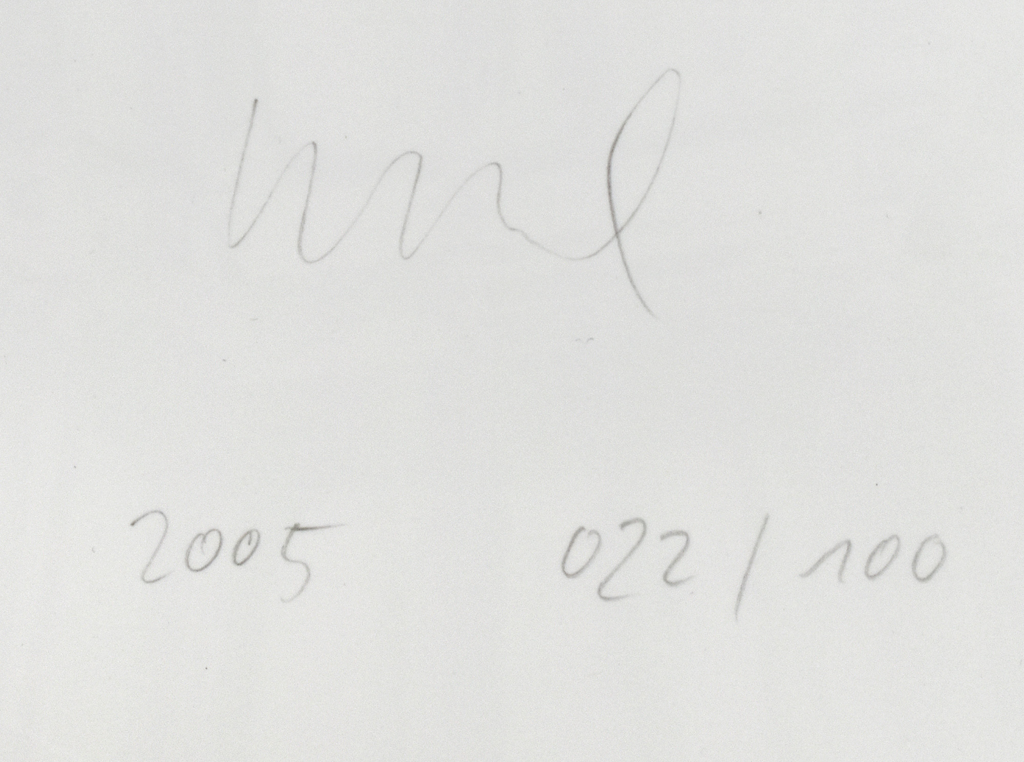 Nummer 22 von 100 nummerierten Original-Fotografien auf Fotopapier. Rückseitig von Jens Ullrich in Blei nummeriert, datiert (2005) und signiert. Provenienz: Aus dem Nachlass des Kunstsammlers und Autors Ralf Seilheimer. Maße Blatt: 60,0 x 42,5 cm. Maße Abbildung: 51,0 x 36,4 cm. Rückseitig kleine Sammlungsnummer eingetragen. Sehr gutes Exemplar.