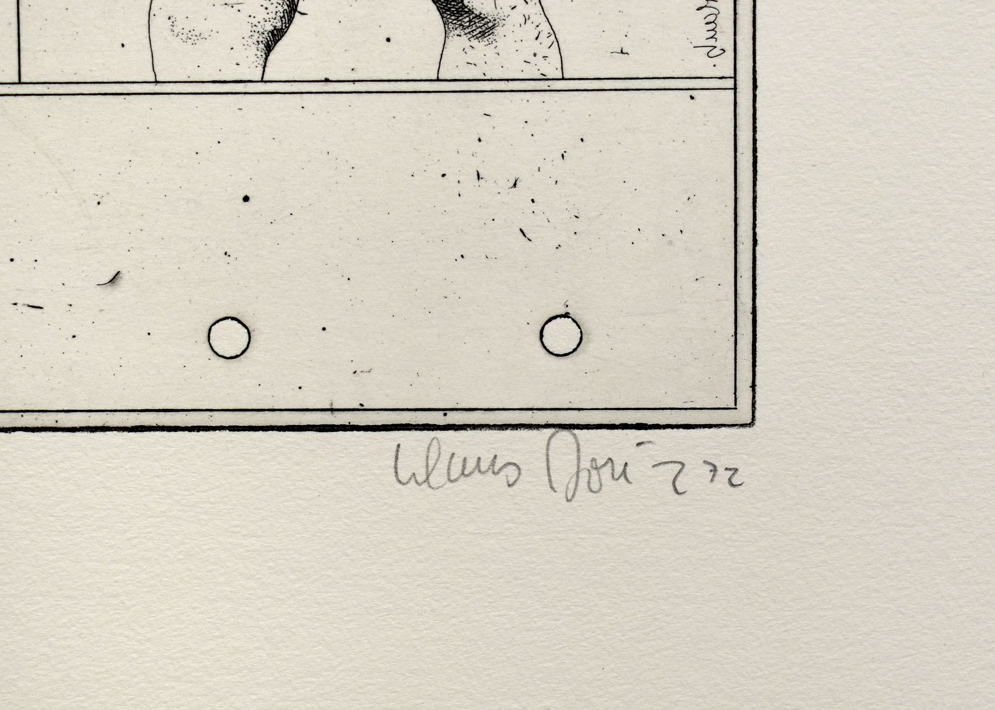 Nummer 46 von 100 Exemplaren auf Büttenpapier. Von Klaus Böttger unterhalb der Abbildung in Blei nummeriert, beschriftet, signiert und datiert (72), hergestellt im Selbstdruck. Technik: Ätzung, aufkopiertes und überarbeitetes Klischee auf Zinkblech, von 1 Platte in Schwarz. Edition der Neuen Münchner Galerie, München. Werkverzeichnis Nr. 248. Maße Abbildung: 28,9 x 26,4 cm. Maße Blatt: 53,5 x 39,5 cm. Sehr gutes, tadelloses Exemplar.