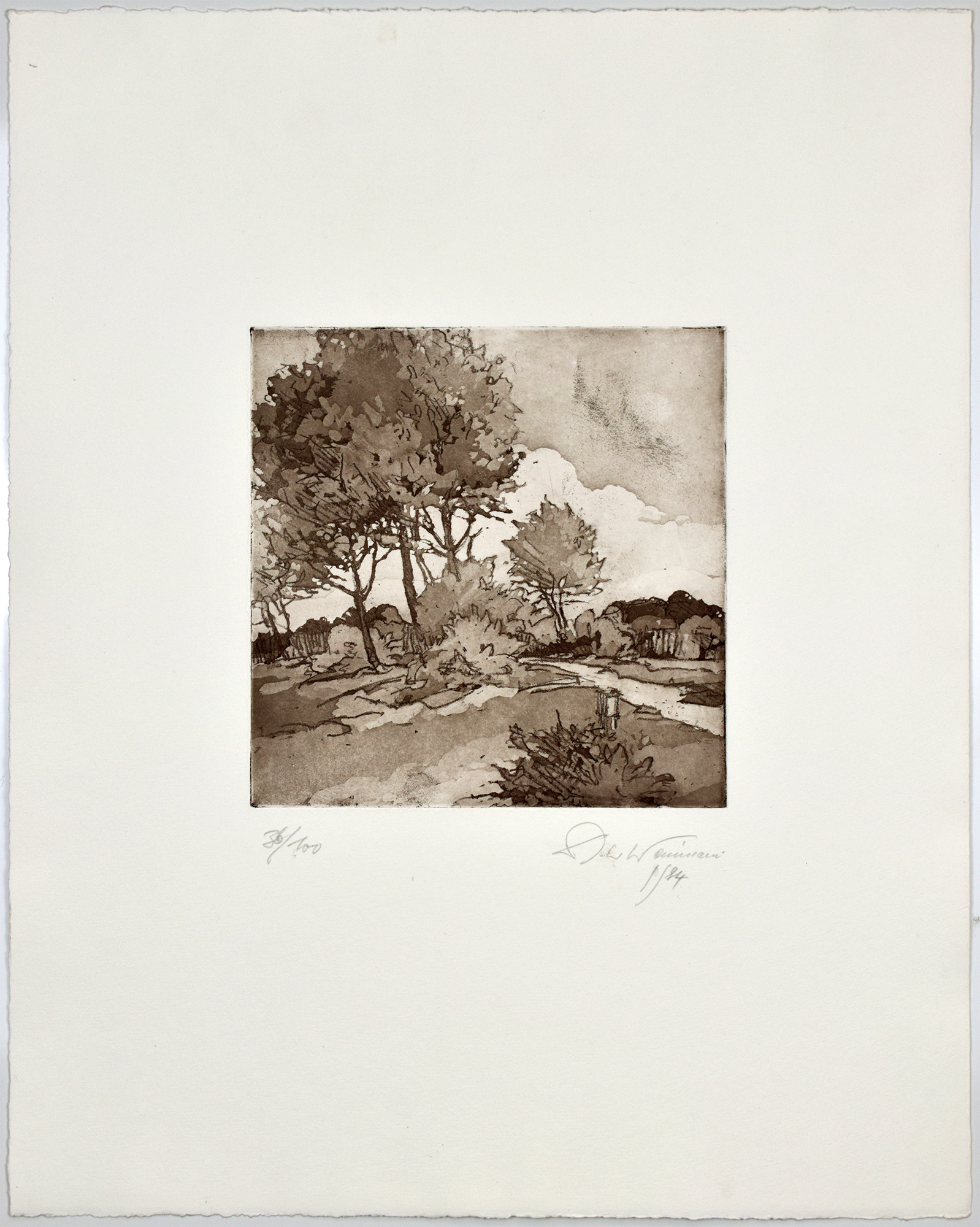 Weinmann, Dieter: Parklandschaft. [Signierte Original-Radierung / signed original etching]. (Dieter Weinmann, geboren 1934 in Schwäbisch Hall. Studium an der Akademie der Bildenden Künste in Stuttgart bei Professor G. Gollwitzer, Professor K. Hils, Prof. H. Sohn und Professor Willy Baumeister).