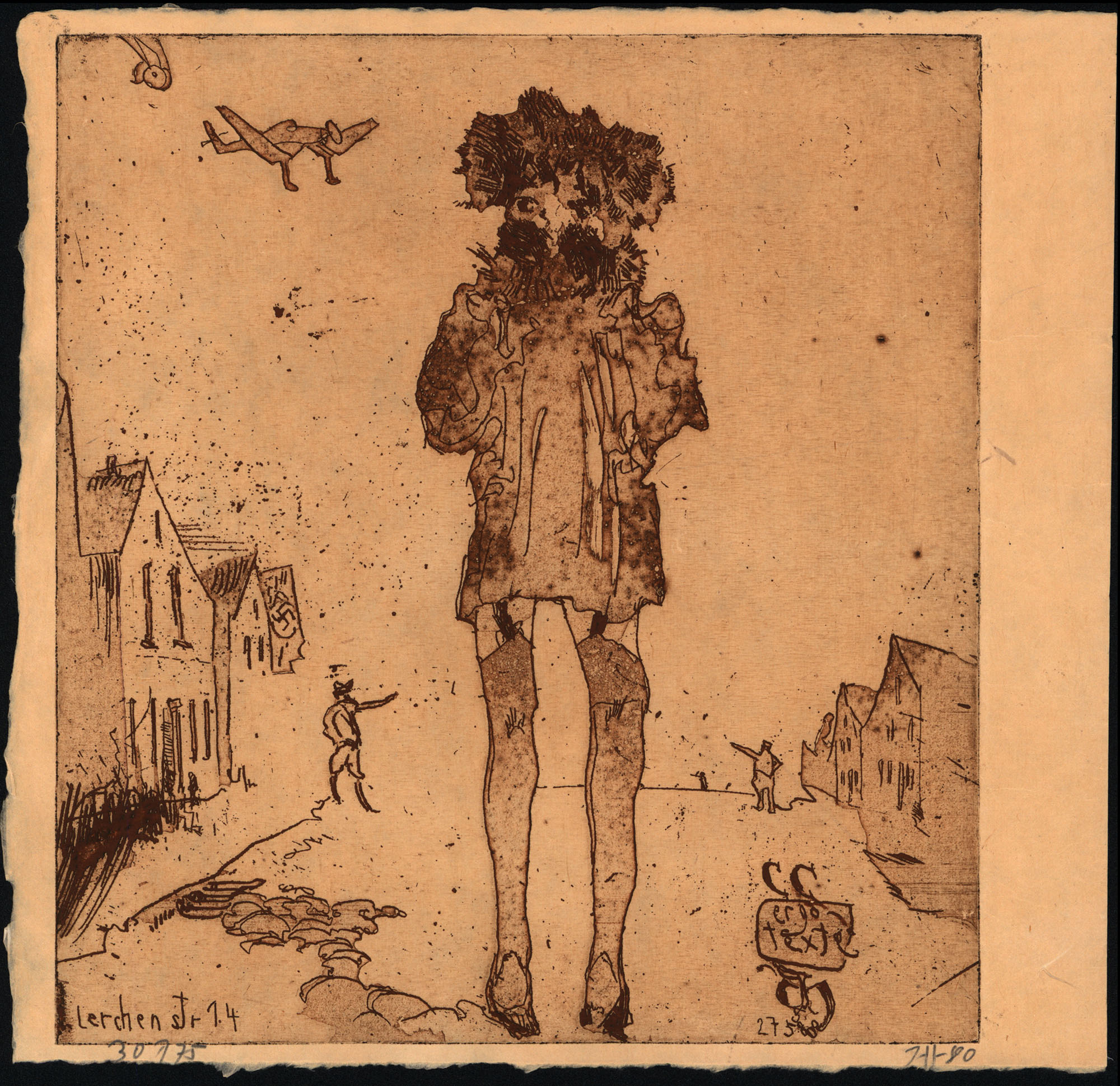 Janssen, Horst: Ergo Texte – Lerchenst. 14. (27.5.80). [Signierte Original-Farbradierung / signed original color etching]. (Horst Janssen, geboren am 14. November 1929 in Wandsbek bei Hamburg, gestorben am 31. August 1995 in Hamburg. Zeichner, Grafiker, Autor, Plakatkünstler, Illustrator und Fotograf, einer der herausragendsten und produktivsten Zeichner und Grafiker des 20. Jahrhunderts).