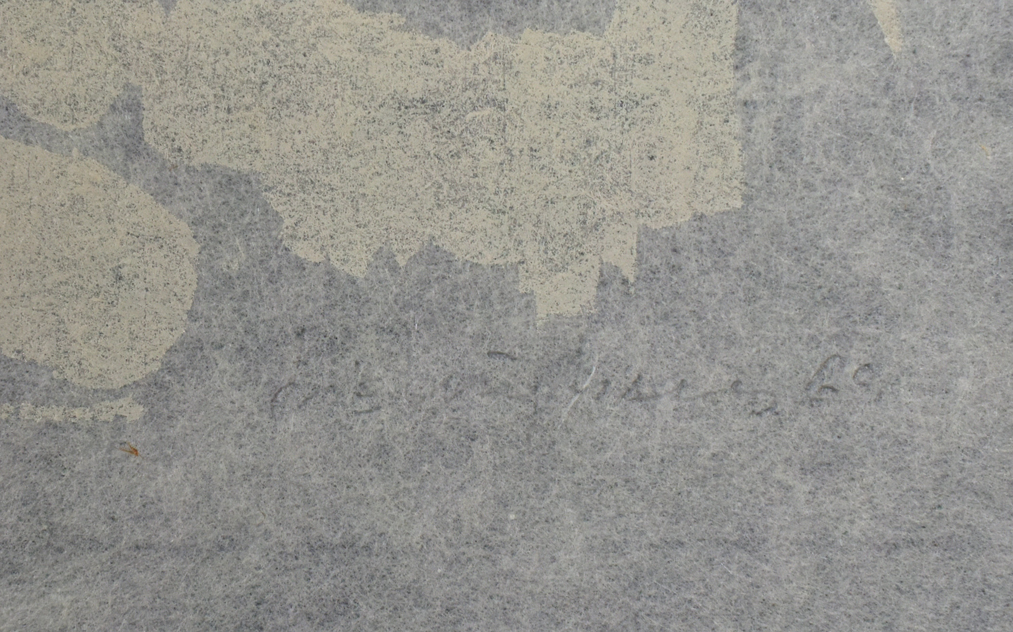 Original-Holzschnitt auf weißem Japanpapier, dieses auf schwarzem Karton fixiert. Unterhalb der Abbildung von Hartmut Frielinghaus in Blei signiert und datiert (69). Maße Blatt: 48,3 x 31,5 cm. Maße Abbildung: 27,1 x 22,0 cm. Herausgegeben von der Griffelkunst-Vereinigung, Hamburg, 1971. Griffelkunst, Verzeichnis der Editionen 184 C 2. Sehr guter Zustand.