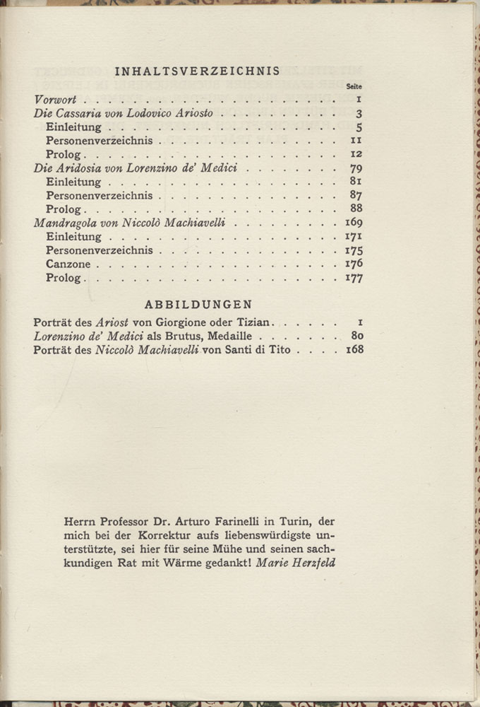 Ariosto, Lodovico; Medici, Lorenzino [di Pierfrancesco] de; Machiavelli, [Niccolò di Bernardo dei]: Drei italienische Lustspiele aus der Zeit der Renaissance. Übersetzt von Paul Heyse. [Vorzugsausgabe.] Jena, bei Eugen Diederichs, 1914. 8°. 21,5 x 15,5 cm. [4] Blatt, 228 Seiten, [1] Blatt. Halbpergamentband mit goldgeprägtem Rückentitel auf rotem Lederschildchen, Buntpapierbezug und gelbem Farbkopfschnitt. (= Das Zeitalter der Renaissance, 1. Serie, Band 9).