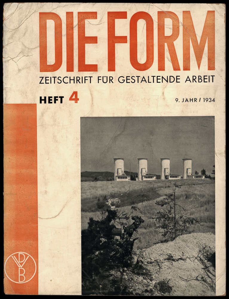 Heiss, Friedrich [Red.]: Die Form. Zeitschrift für gestaltende Arbeit. 9. Jahr / 1934. Heft 4. Berlin, Verlag Ernst Wasmuth, 1934. 4°. 30,5 cm. 16 Blatt. Original-Broschur.
