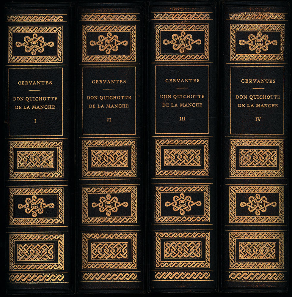 Cervantes, Don Quichotte de la Manche. 4 Bände [komplett; Ganzleder].