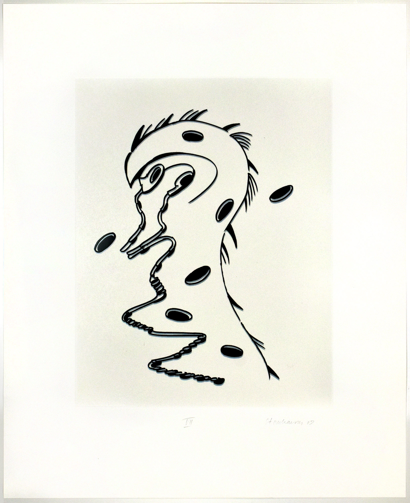 Stockhausen, Friedemann von: Sieben. Serie in einer Mappe mit Titelblatt. [7 signierte Original-Grafiken / 7 signed original graphics]. Friedemann von Stockhausen, geboren 1945 in Karlshafen/Weser. Maler, Fotograf und Hochschullehrer an der HBK Braunschweig.