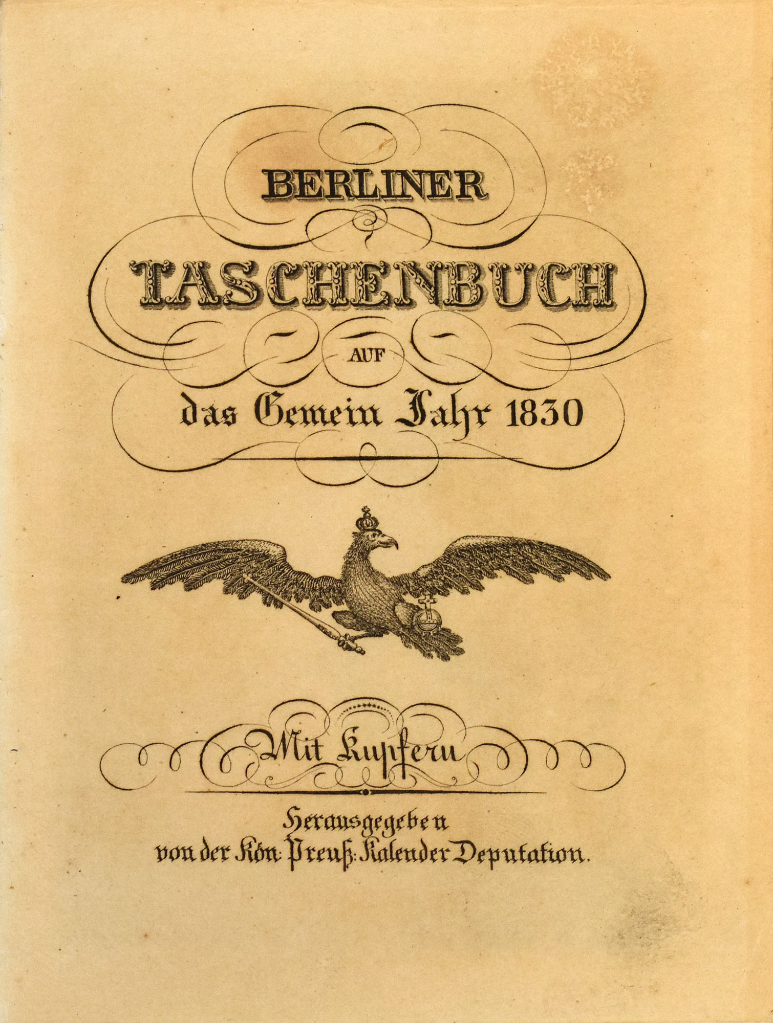 Berliner Taschenbuch auf das Gemein Jahr 1830. Erste Ausgabe. Berlin, 1830