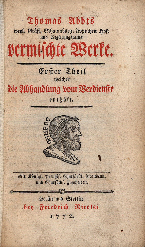Abbt, Vermischte Werke. Erster Theil welcher die Abhandlung vom Verdienste enthä