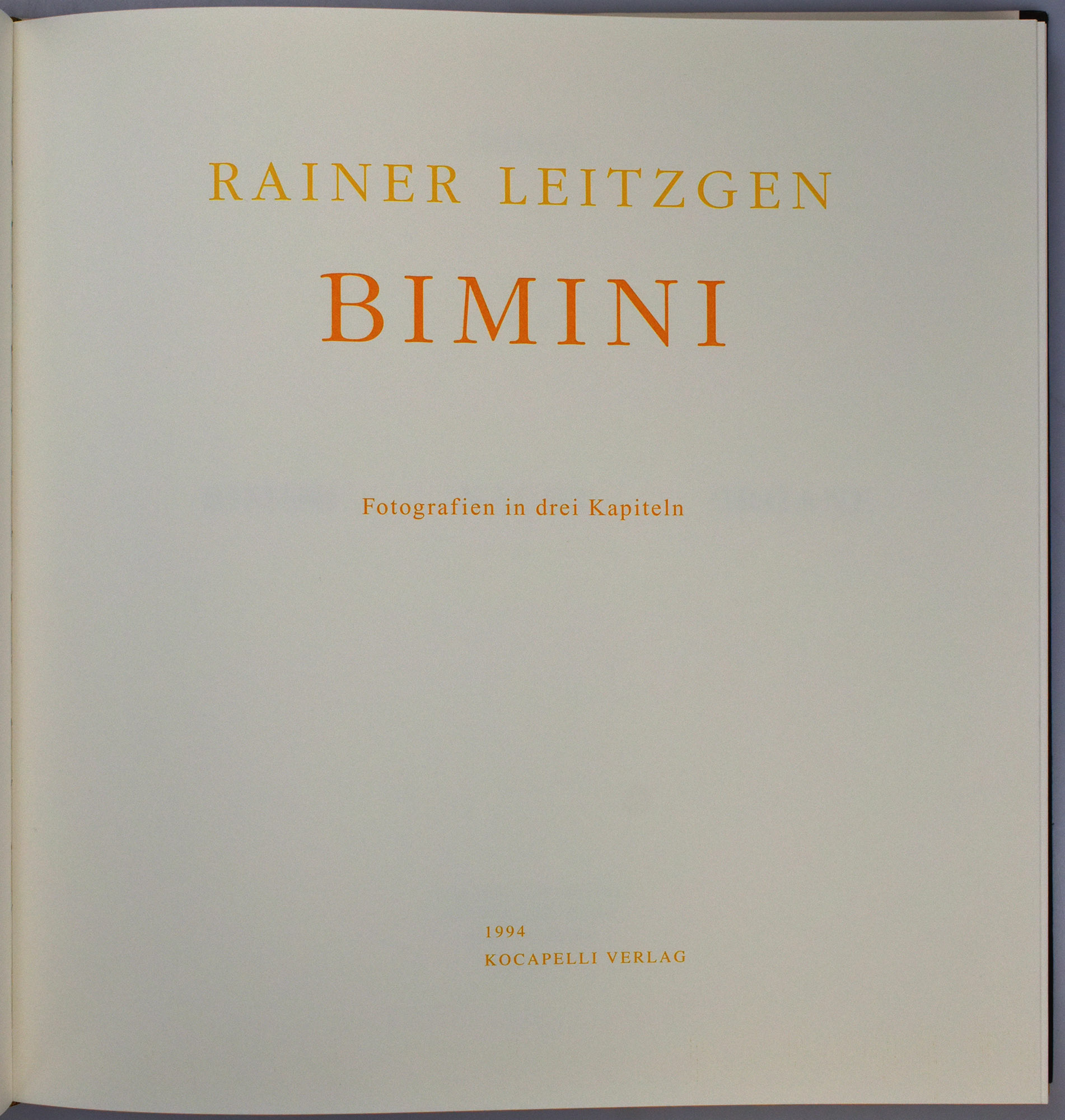 Leitzgen, Rainer: Bimini, Nacht, Organe. Rösrath, Kocapelli Verlag, 1994. 4°. 34 x 32 cm. 160 ungezählte Seiten. Original-Leinenband mit Original-Schutzumschlag.