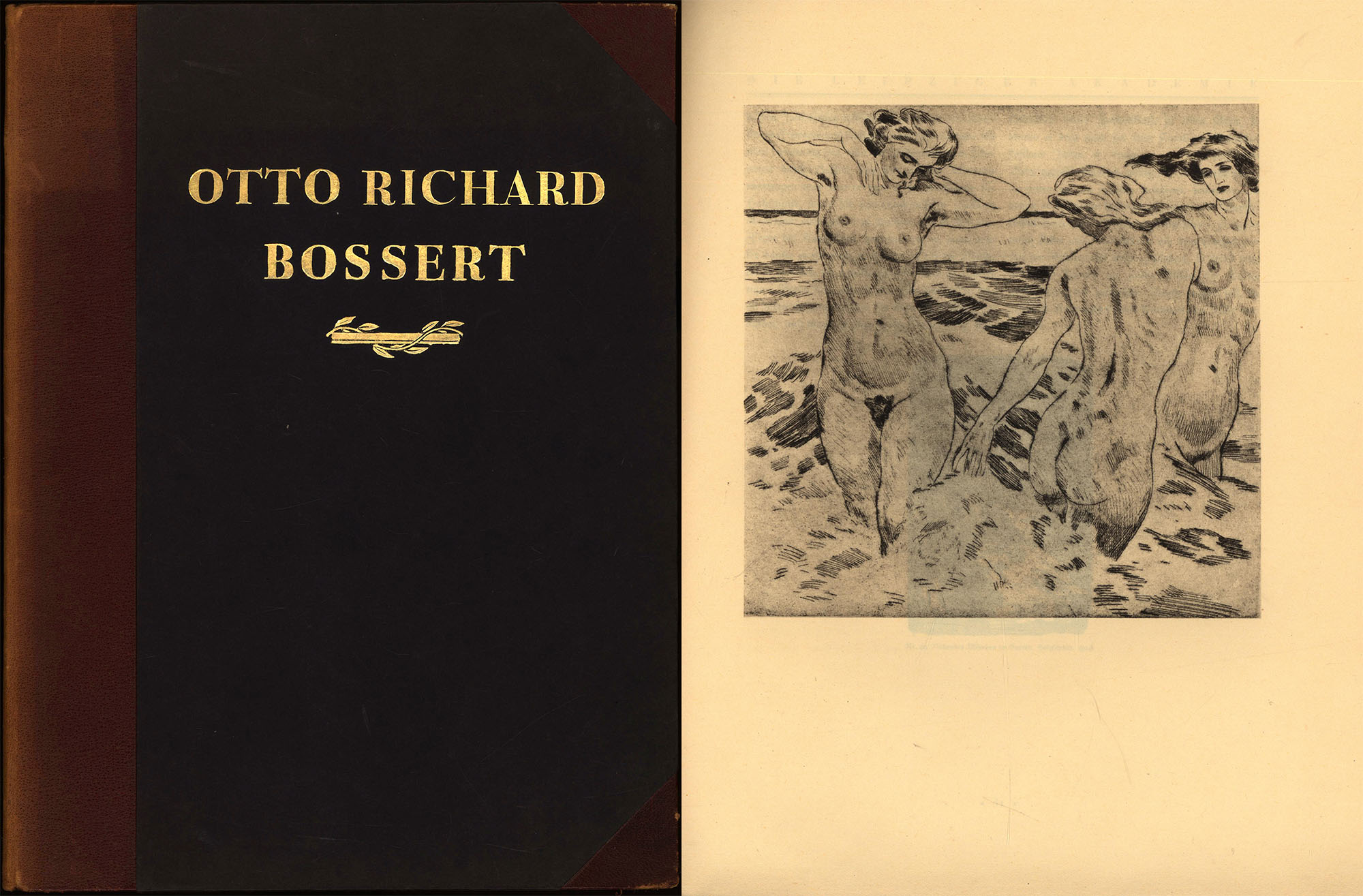 Bossert, Otto Richard – Zeitler, Julius: Otto Richard Bossert. Leben und Werk eines graphischen Künstlers. Mit 62 Abbildungen im Text und 6 Lichtdrucktafeln. [Vorzugsausgabe mit Original-Grafiken]. Leipzig, Voigtländer Verlag, 1920. 4°. 32,5 x 25,5 cm. 95 Seiten. Halblederband der Zeit mit goldgeprägtem Deckeltitel.