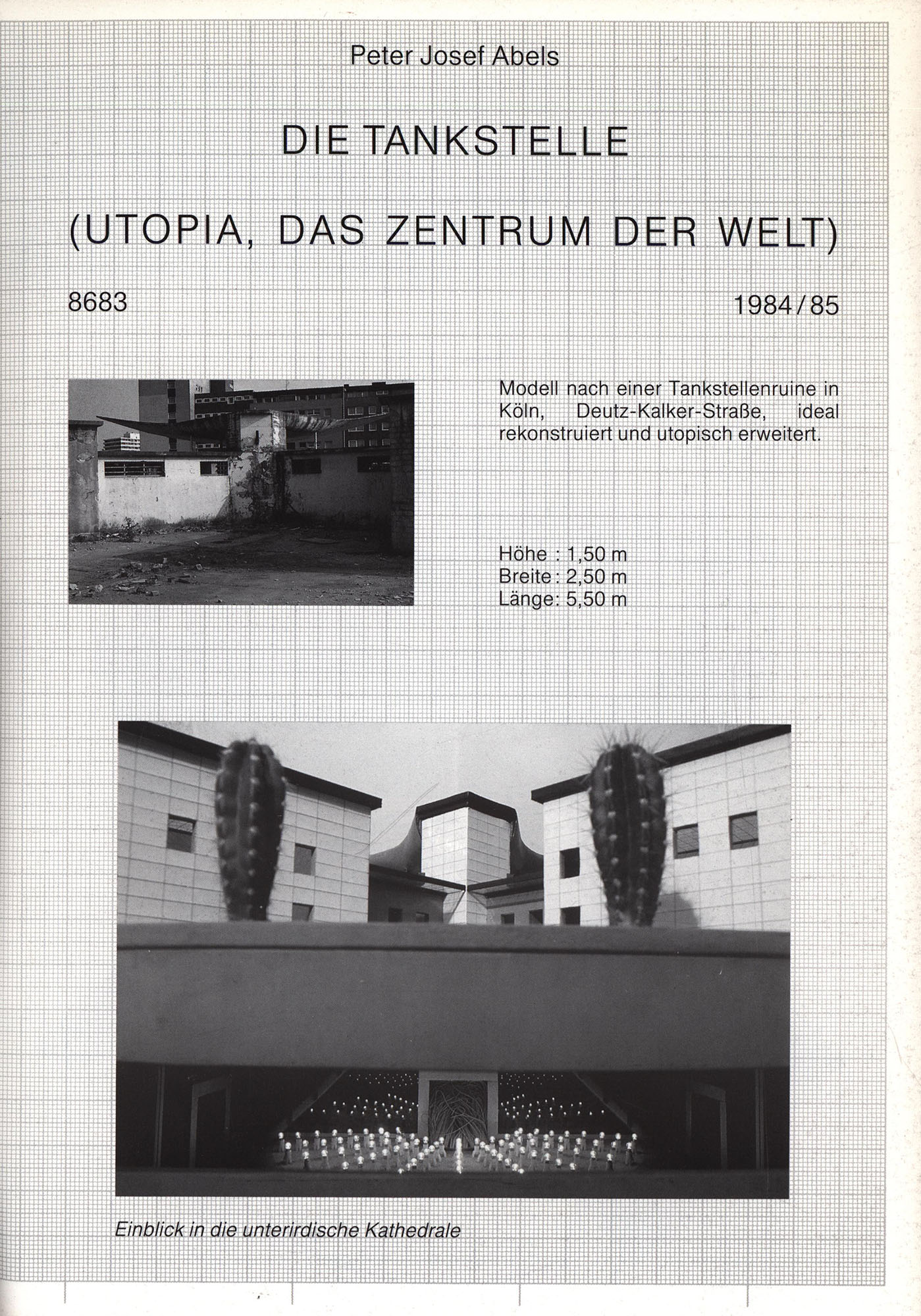 Abels, Peter Josef: Die Tankstelle. Utopia, das Zentrum der Welt. Modell nach einer Tankstellenruine in Köln, Deutz-Kalker-Straße, ideal rekonstruiert und utopisch erweitert. Düsseldorf, 1986. 4°. 29,5 x 21 cm. [8] Seiten. Original-Broschur.
