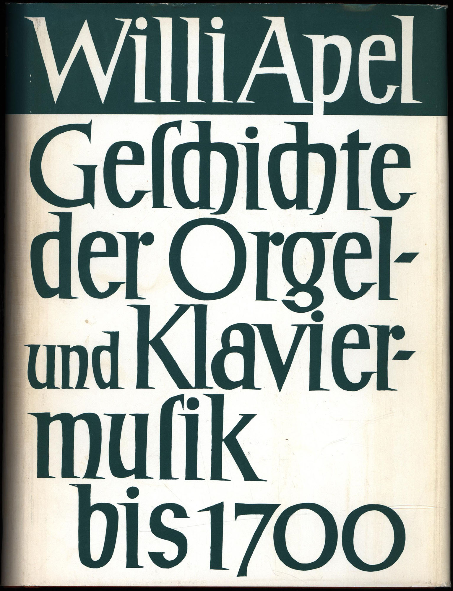 Apel, Willi: Geschichte der Orgel- und Klaviermusik bis 1700. Kassel, Bärenreiter-Verlag, 1967. Groß-8°. 25 x 19 cm. XV, 784 Seiten. Original-Leinenband mit Original-Schutzumschlag.