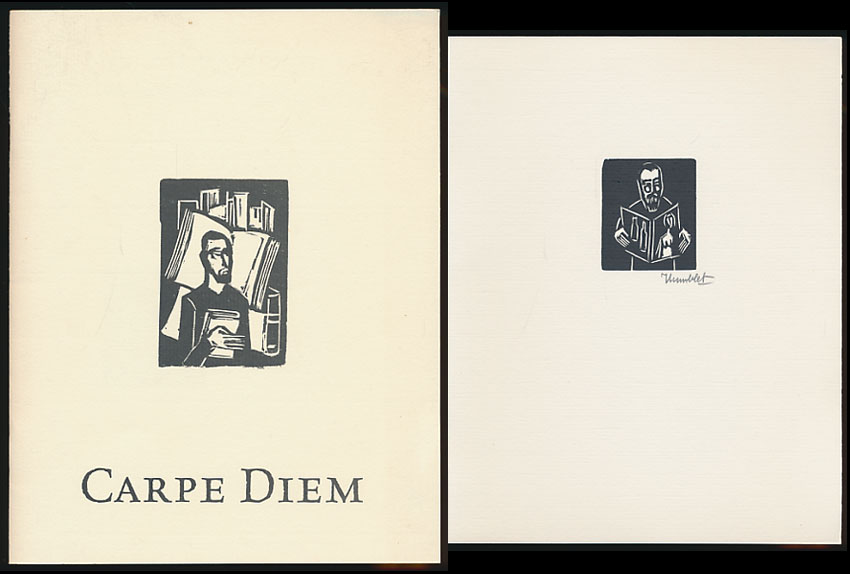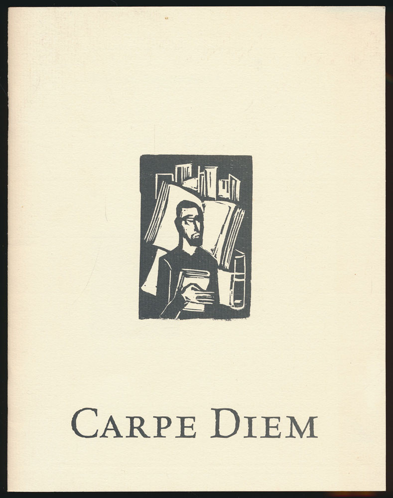 Baeyens, Richard [Hrsg.]: Carpe Diem. [3x signiert, mit Original-Holzschnitt.] Brüssel, Pagadderke, 2000. Groß-8°. 23 cm. 8 Blatt. Original-Broschur. (= Eelsche Chronicken, Band 1).