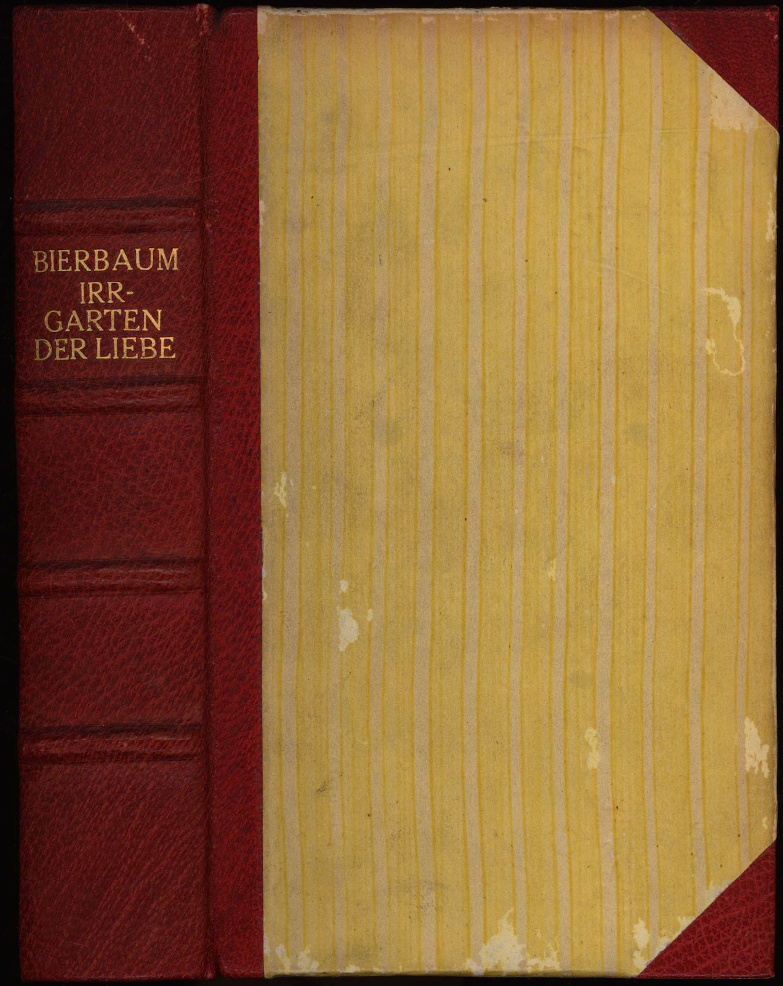Bierbaum, Otto Julius: Der Neubestellte Irrgarten der Liebe. Um etliche Gänge und Lauben vermehrt; verliebte, launenhafte, moralische und andere Lieder, Gedichte und Sprüche aus den Jahren 1885 bis 1905. Leipzig, Insel-Verlag, 1919. Klein-8°. 17 x 11 cm. 437 Seiten. Original-Halblederband mit goldgeprägtem Rückentitel.