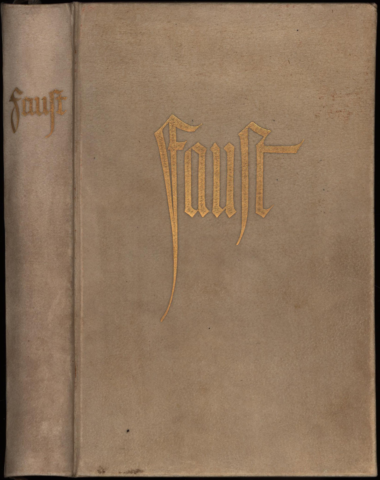 Goethe, Johann Wolfgang von: Faust. Zueignung, Vorspiel auf dem Theater, Prolog im Himmel, der Tragödie erster Teil [und] zweiter Teil. 2 Teile (in 1 Band, komplett). Berlin, Verlag Fritz Heyder, 1911-1913. 8°. 17,5 x 11,5 cm. 445 Seiten, [1] Blatt. Frontispiz. Original-Pergamentband mit goldener Titelprägung und Kopfgoldschnitt. (= Bücher als Gefährten, Band 1 und 2).