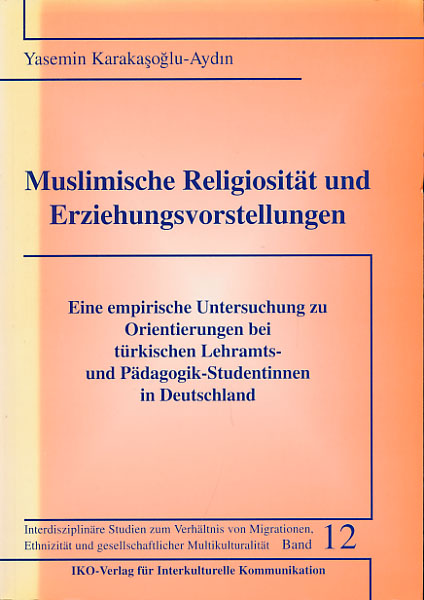 Karakasoglu-Aydin, Yasemin: Muslimische Religiosität und Erziehungsvorstellungen. Eine empirische Untersuchung zu Orientierungen bei türkischen Lehramts- und Pädagogik-Studentinnen in Deutschland. Frankfurt am Main, IKO – Verlag für Interkulturelle Kommunikation, 2000. 8°. 21 cm. 478 Seiten. Original-Broschur. (Interdisziplinäre Studien zum Verhältnis von Migrationen, Ethnizität und gesellschaftlicher Multikulturalität, Band 12).