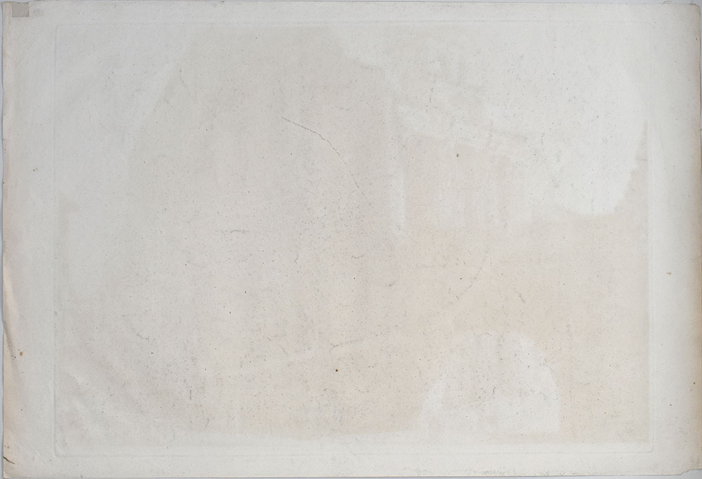 Original-Kupferstich auf Büttenpapier. Blatt aus der Serie der „Antichita romane“ (Römische Altertümer). Unterhalb des Kupferstiches Text, links bezeichnet „Rossini dis. e. inc.“, rechts unten „Roma 1822“. Maße Blatt: 50,5 x 73,0 cm. Maße Platte: 36,5 x 54,5 cm. Blatt mit leichten Gebrauchsspuren, wenig fleckig, angestaubt, leichte Knicke. Gutes bis sehr gutes Exemplar.