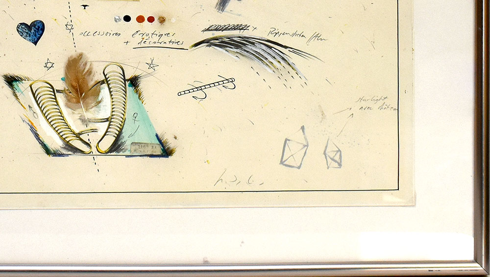 Lorbeer, Johan: Federn. [Assemblage, Collage auf Papier/ assemblage, collage on paper]. Johan Lorbeer, geboren 1950 in Minden. Studium an der Kunstakademie Nürnberg. In den späten siebziger Jahren begann der Künstler ein intermediales Werk zu entwickeln, das zwischen Zeichnung, Performance und Skulptur angesiedelt ist.