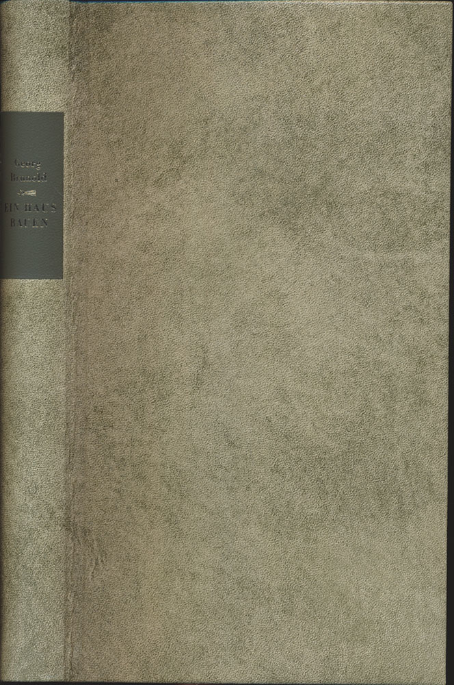 Brunold, Georg: Ein Haus bauen. Besuche auf fünf Kontinenten. Frankfurt am Main, Eichborn Verlag, 2006. 8°. 22 x 13 cm. 300 Seiten. Original-Ganzlederband mit goldgeprägtem Rückenschild. (= Die Andere Bibliothek, Band 257).
